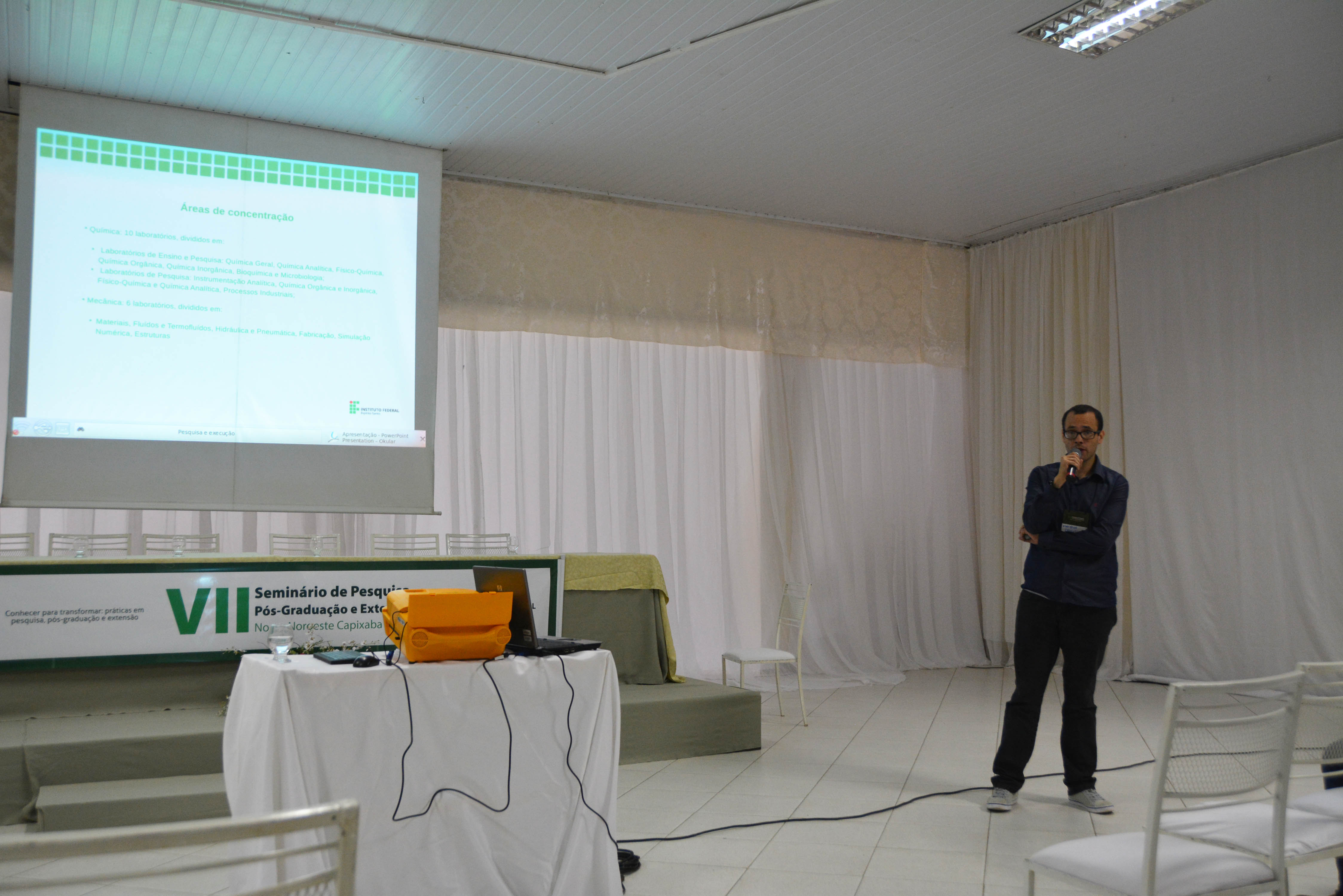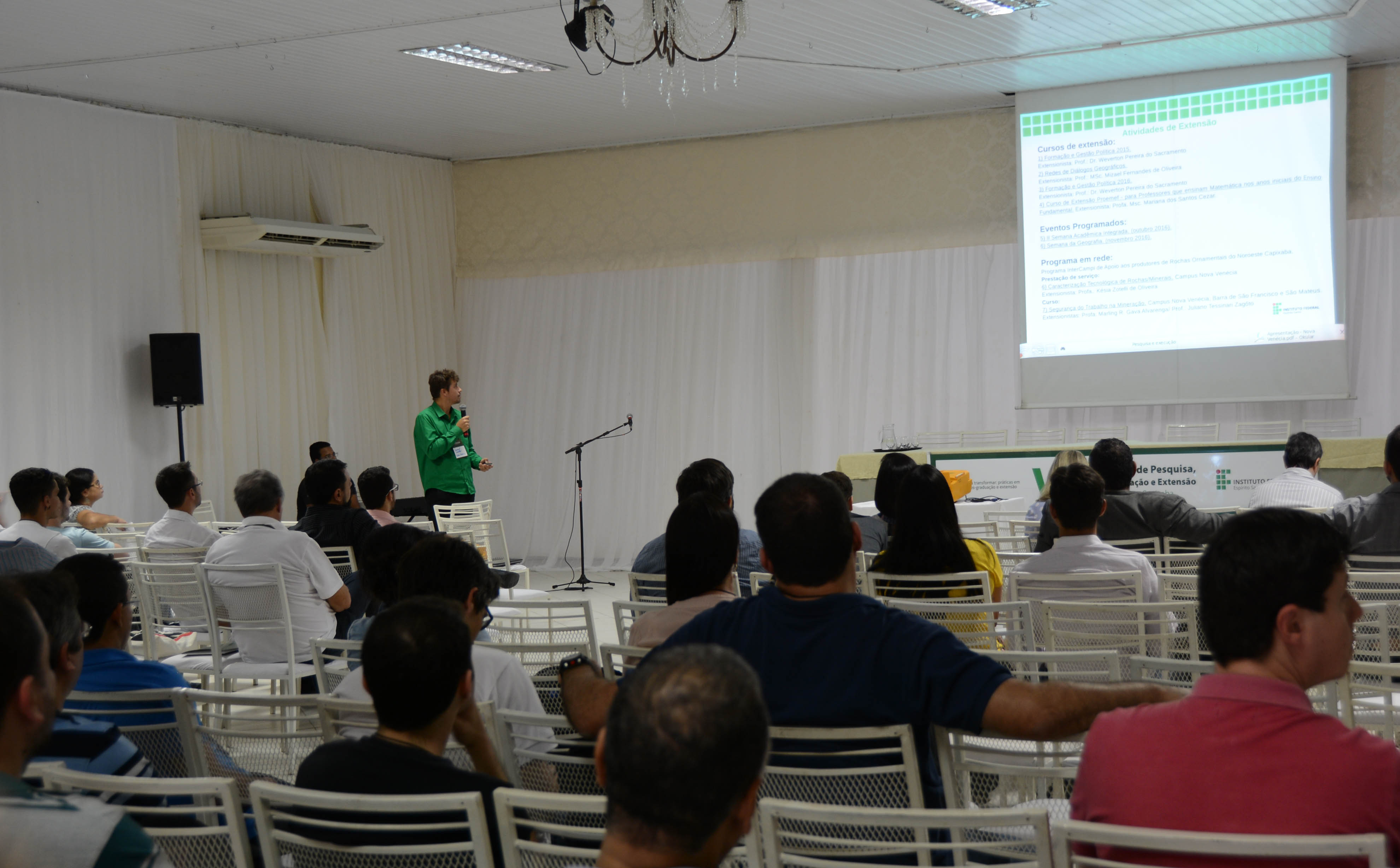 Cerca de 80 servidores do Instituto Federal do Espírito Santo (Ifes), dos campi Aracruz, Barra de São Francisco, Colatina, Itapina, Linhares, Montanha, Nova Venécia, Santa Teresa e São Mateus, estiveram reunidos para um dia de trabalhos no VII Seminário de Pesquisa, Pós-Graduação e Extensão do Norte e Noroeste. O evento foi realizado no cerimonial Dia de Festa, em Barra de São Francisco, no dia 1º de setembro, com o tema “Conhecer para Transformar”.