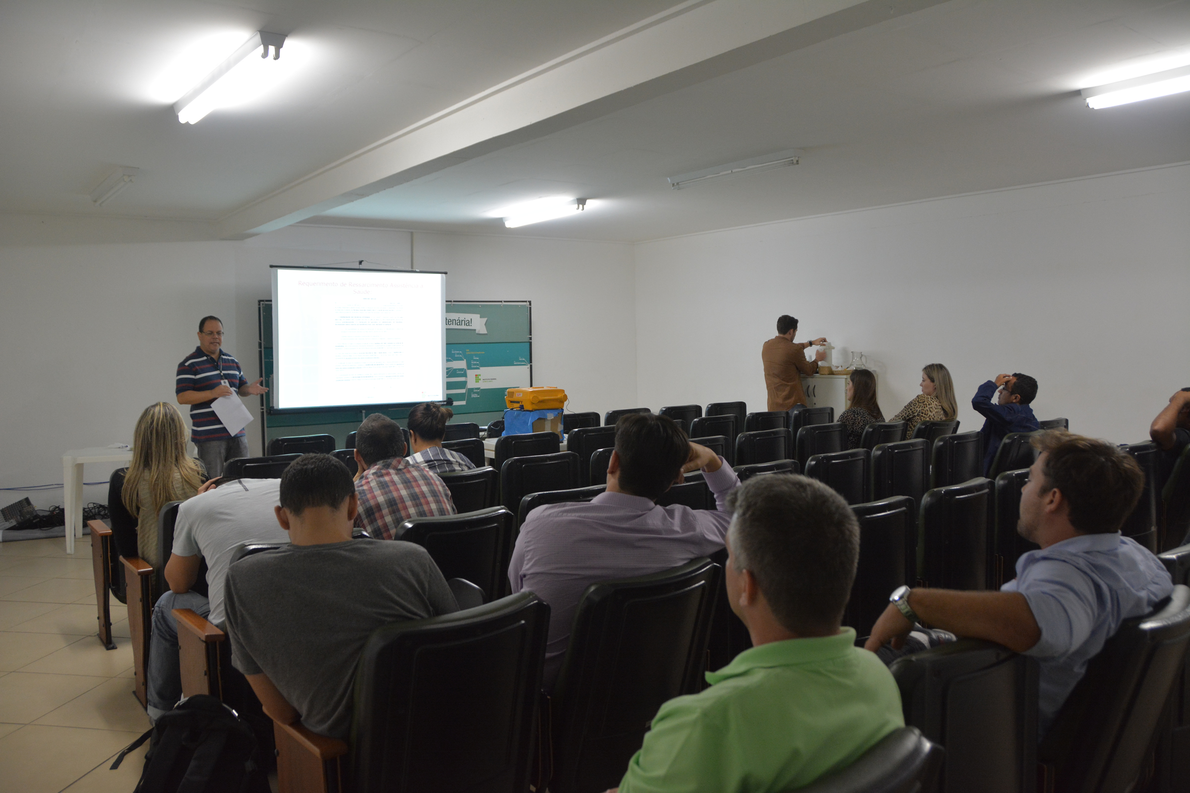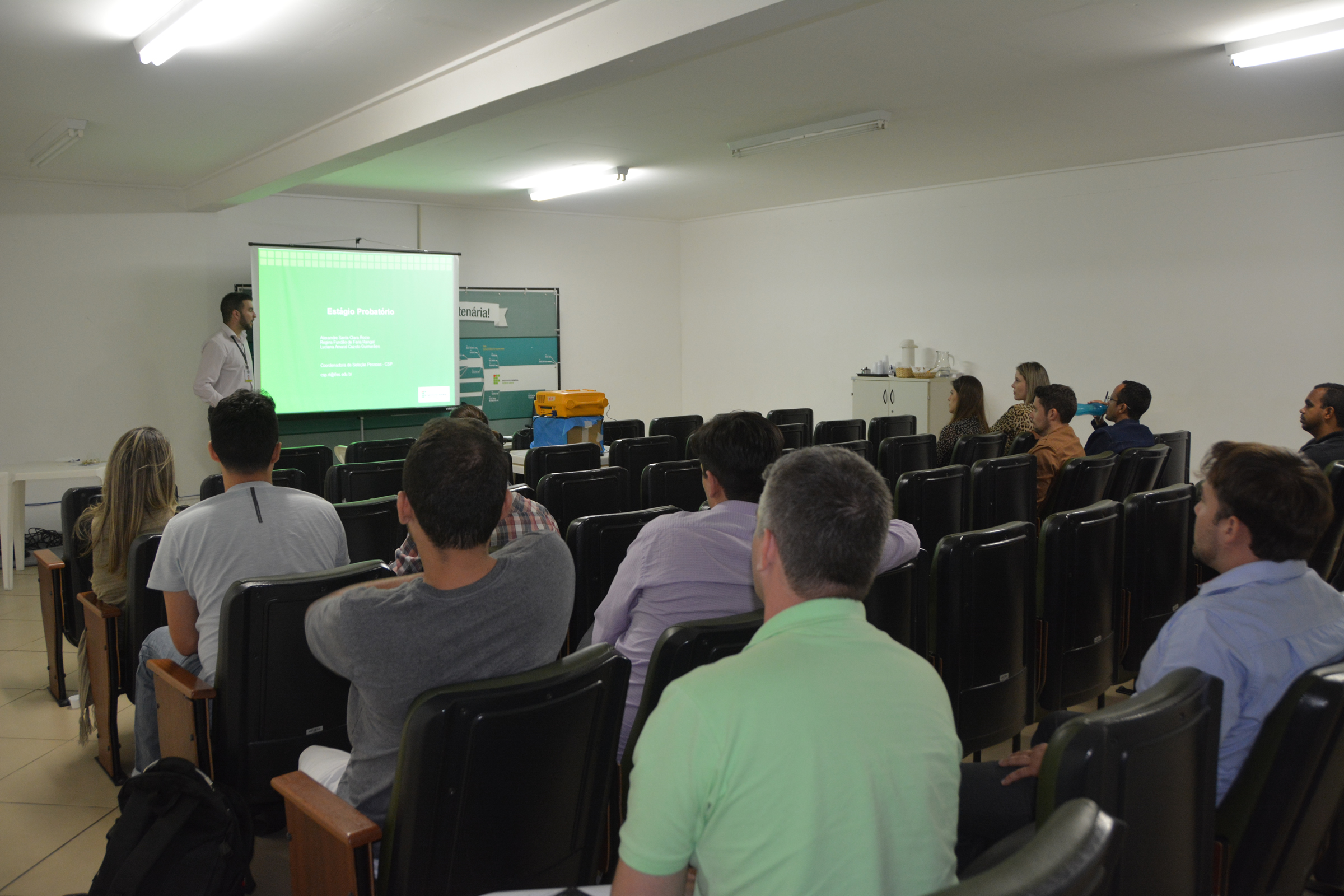 A programação da posse coletiva foi realizada das 8h30 às 17h, no miniauditório, com palestras sobre a estrutura organizacional do Ifes, além de orientações relativas à Gestão de Pessoas, com apresentações sobre as coordenadorias que compõem a Diretoria de Gestão de Pessoas do Instituto.