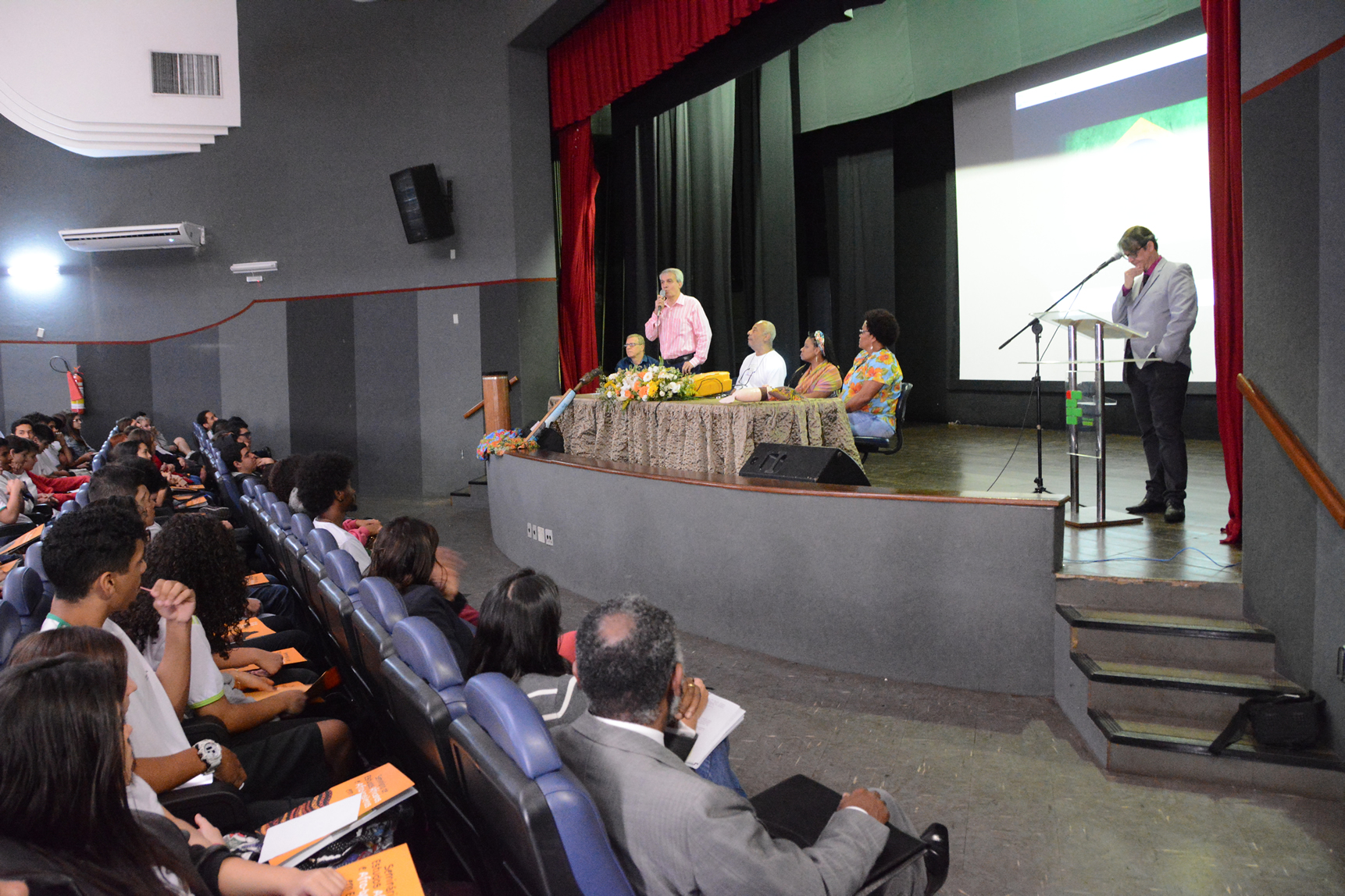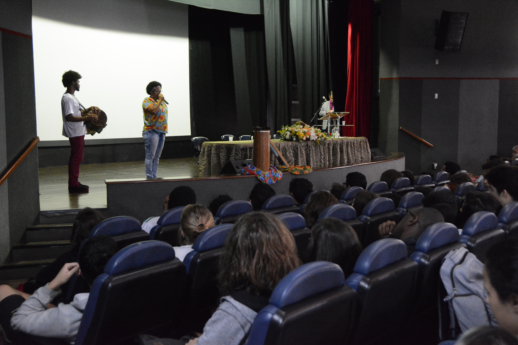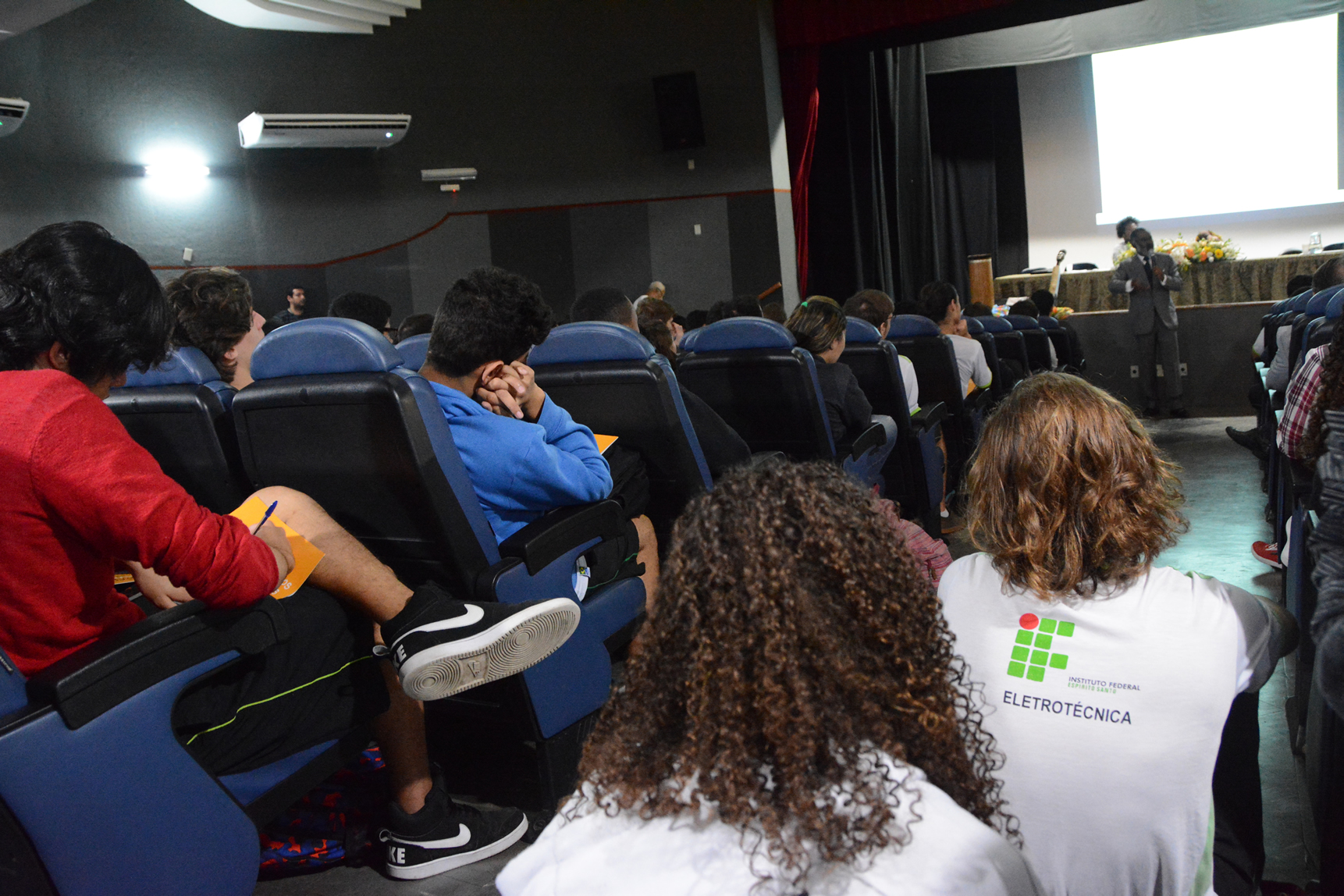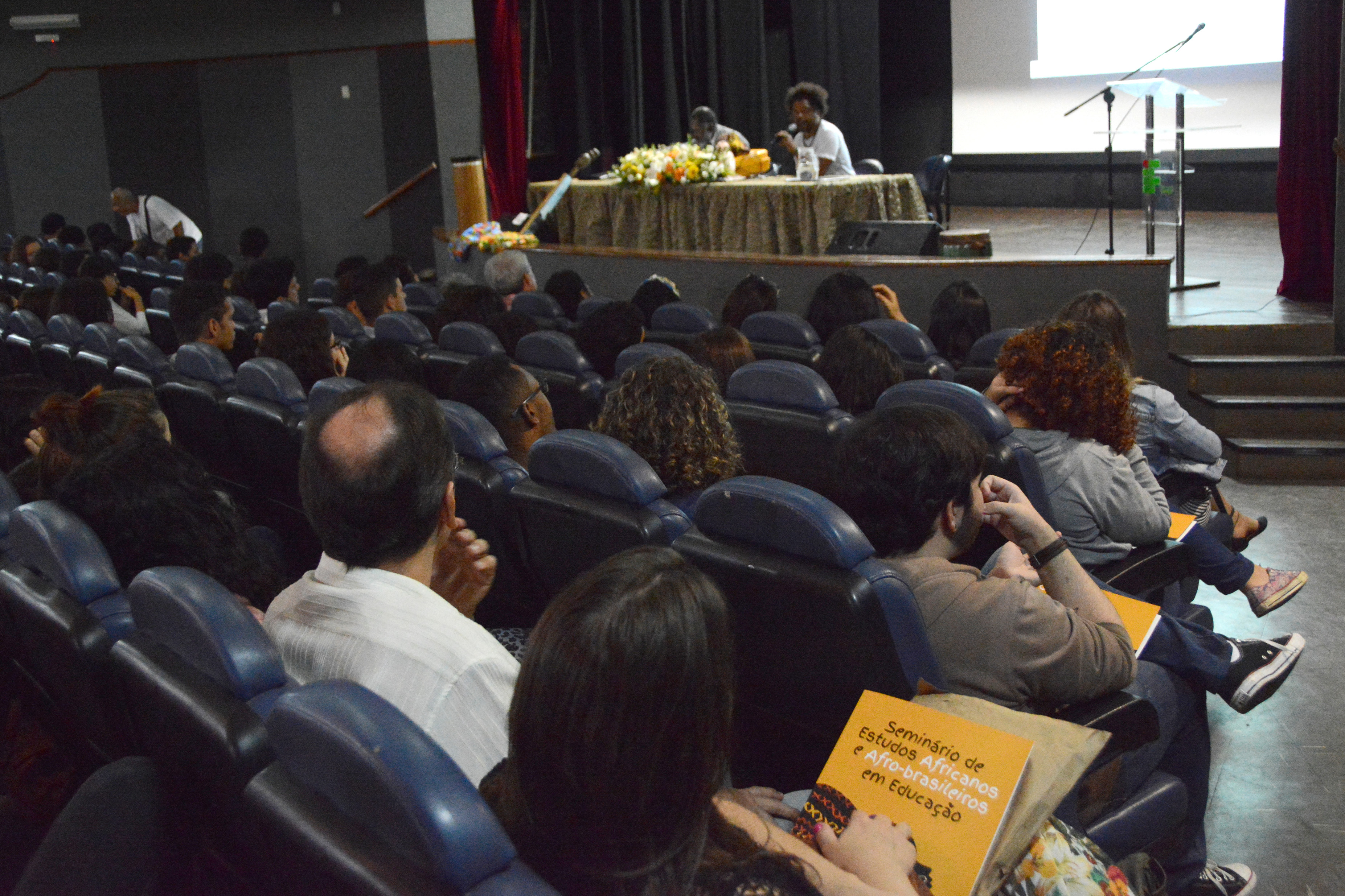 O IV Seminário de Estudos Africanos e Afro-brasileiros em Educação lotou o Teatro do Campus Vitória, no dia 28 de agosto. Os alunos de 16 turmas de cursos técnicos integrados ao ensino médio foram chamados para participar do evento, que contou com uma palestra do diretor-executivo da Incubadora Afro Brasileira, Giovanni Harvey, e teve, ao longo do dia, oficinas, exposições e exibição de filme.