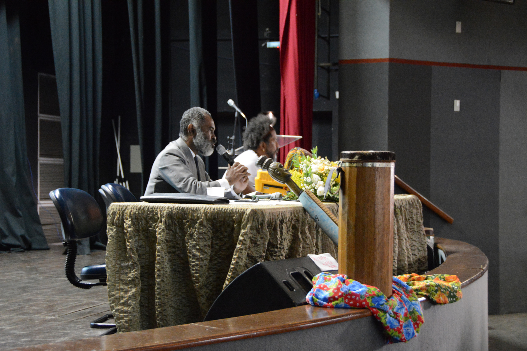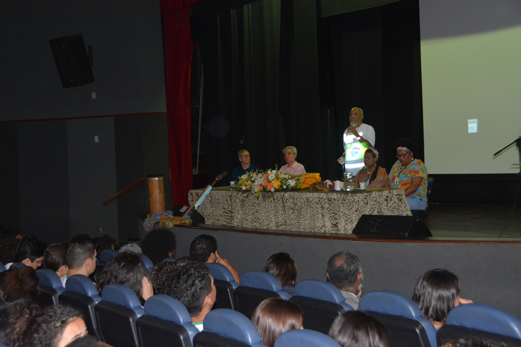 A programação teve início às 8 horas com a composição da mesa de honra, da qual fizeram parte o diretor do campus, Ricardo Paiva; o diretor de Ensino, Hudson Côgo; as coordenadoras Jamilda Bento e Dalivia Bulhões, do Núcleo de Estudos Afro-Brasileiros e Indígenas (Neabi) do Campus Vitória; e o coordenador do Centro de Estudos da Cultura Negra (Cecun), Luiz Carlos Oliveira.
