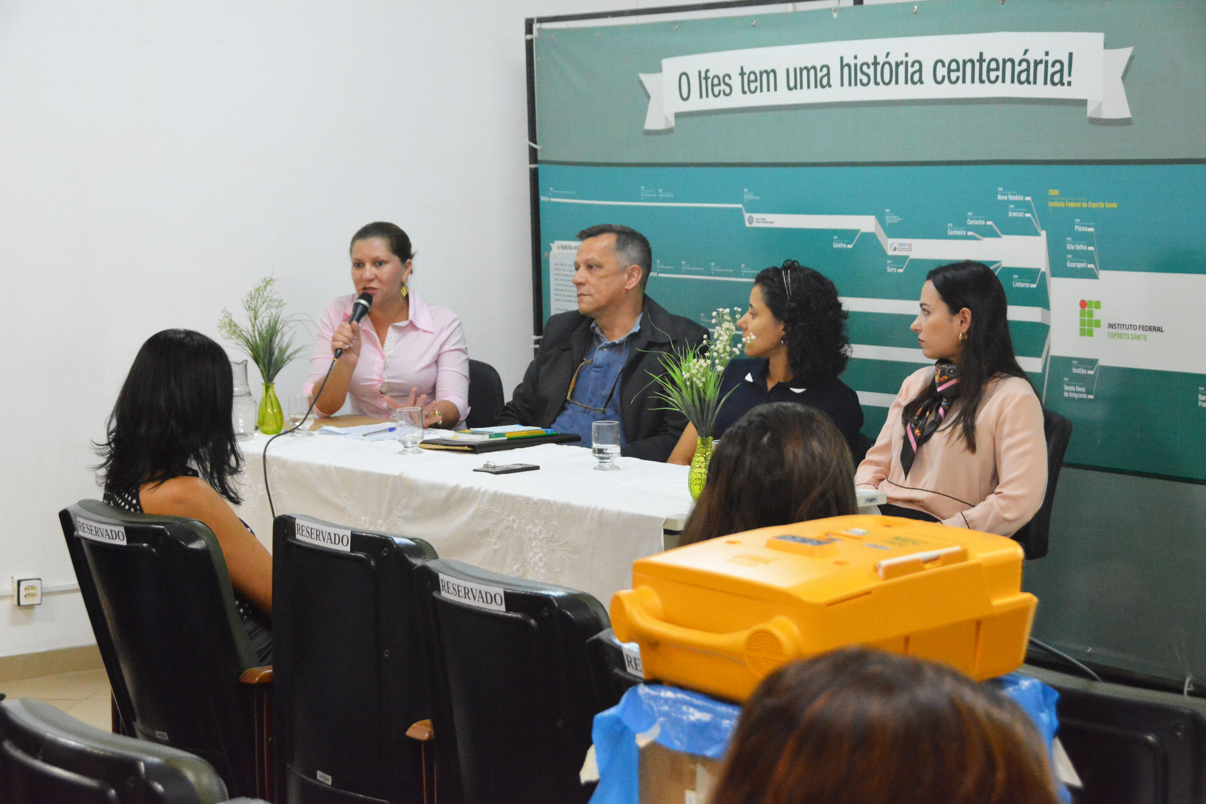 Servidores da Reitoria e de alguns campi do Instituto Federal do Espírito Santo (Ifes) participaram, na manhã desta sexta-feira (29), de uma mesa-redonda sobre assédio moral no trabalho. A discussão foi mediada pela assistente social da Reitoria, Sandra Gonçalo, e teve a participação da assessora processual do Ifes, Layla Hatab, e do presidente da Comissão de Ética da instituição, Ricardo Martinelli.