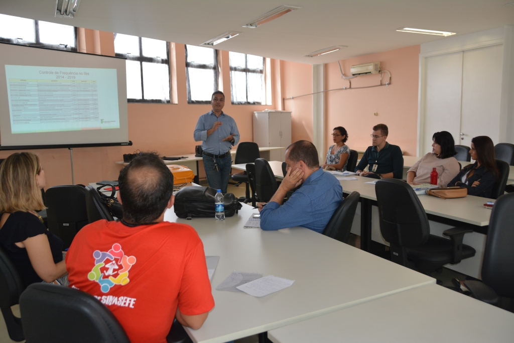 A reunião foi realizada nesta sexta-feira (9) e buscou contextualizar o estudo da nova norma de controle de frequência no governo federal. Estiveram presentes, representando o sindicato, Suzana Maria Gotardo Chambela, da Seção Santa Teresa; e Thalismar Gonçalves, do Sinasefe Ifes. O encontro foi conduzido pelo pró-reitor de Desenvolvimento Institucional, Luciano Toledo.