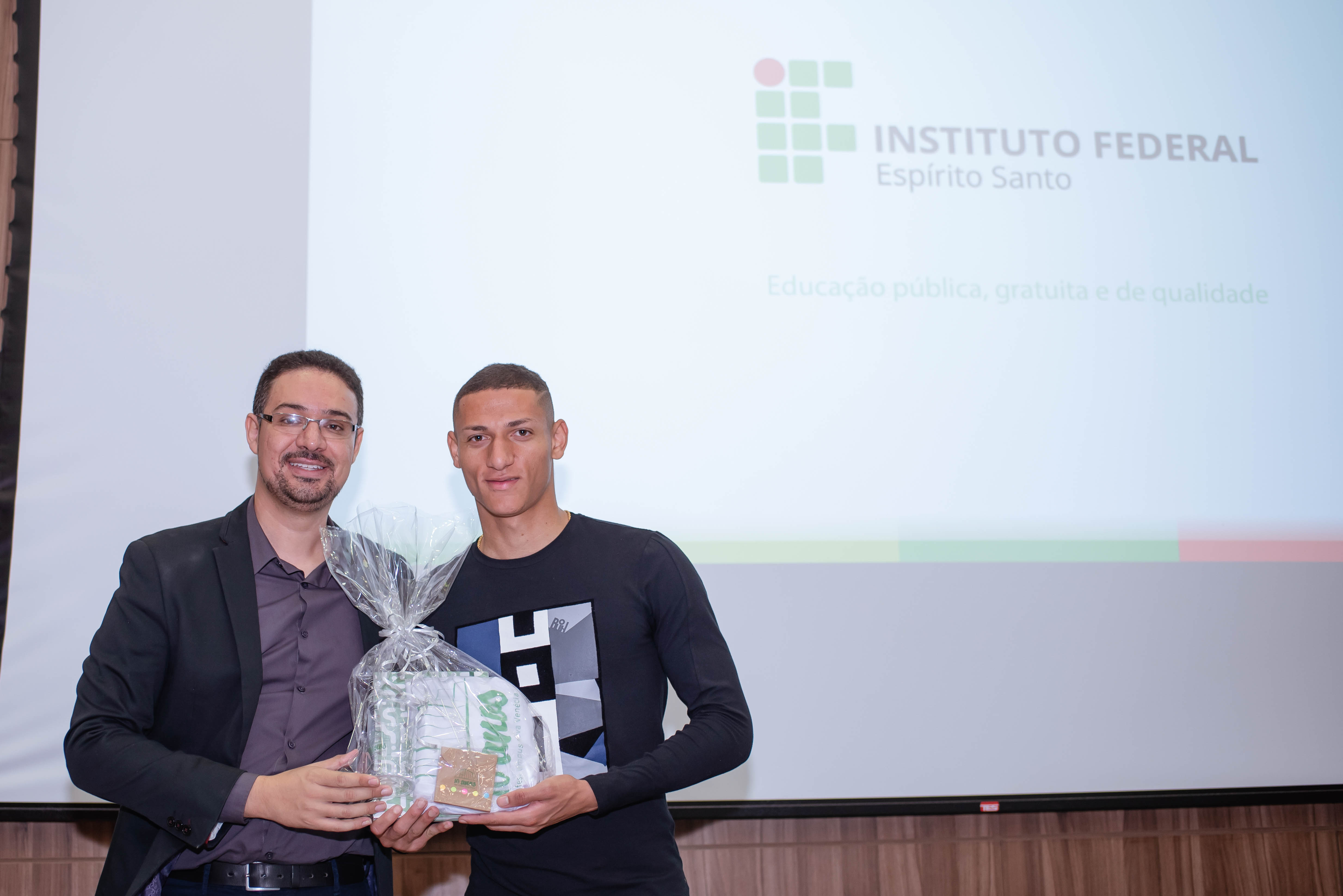O Campus Nova Venécia, do Instituto Federal do Espírito Santo (Ifes), recebeu na última terça-feira (16) o jogador da Seleção Brasileira de Futebol, Richarlison, para homenageá-lo por sua habilidade em campo e por sua generosidade fora dos gramados. Recentemente, o jogador fez uma doação de R$ 49 mil para que estudantes do campus participem da Olimpíada Internacional de Matemática, que acontece em Taiwan em agosto.