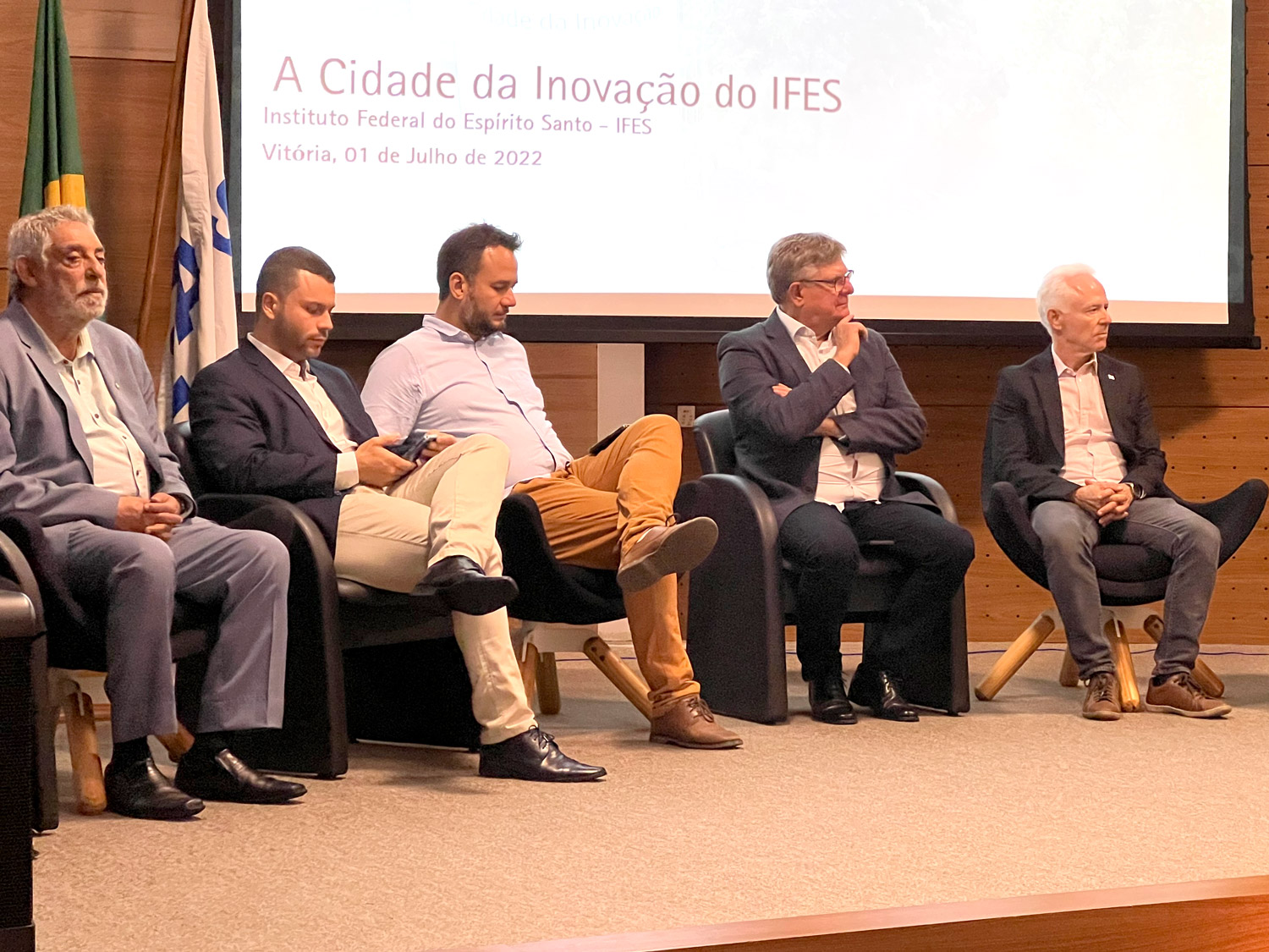 O Instituto Federal do Espírito Santo (Ifes) fez nesta sexta-feira (1º de julho de 2022) o lançamento do planejamento estratégico da Cidade da Inovação. O evento foi realizado no auditório do Sebrae-ES, em Vitória, e contou com a participação de representantes de diversos órgãos governamentais e empresas, além de ter transmissão pelo YouTube do Ifes.