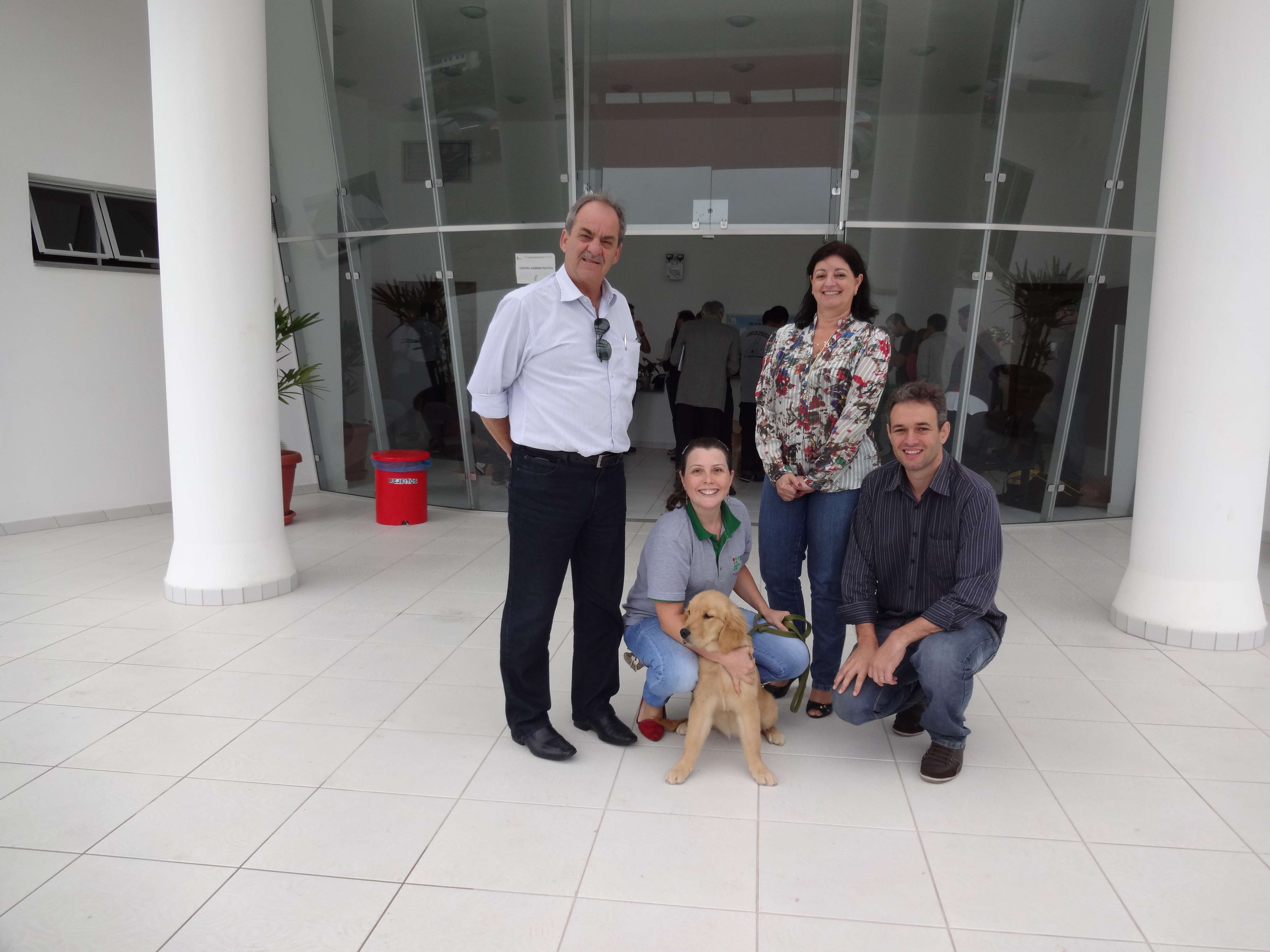 A diretora-geral do campus de Alegre, Maria Valdete Santos Tannure, o diretor de Administração, Romulo Matos de Moraes, e o professor Carlos Humberto Sanson Moulin realizaram, no dia 16 de maio, visita ao campus Camboriú do Instituto Federal Catarinense - IFC. Eles participaram de uma reunião conjunta com os representantes dos Centros de Formação de Treinadores e Instrutores de Cães-Guia, dentre eles a servidora Maria Aparecida Zaché, representante do Instituto Federal do Espírito Santo - Ifes no projeto.
