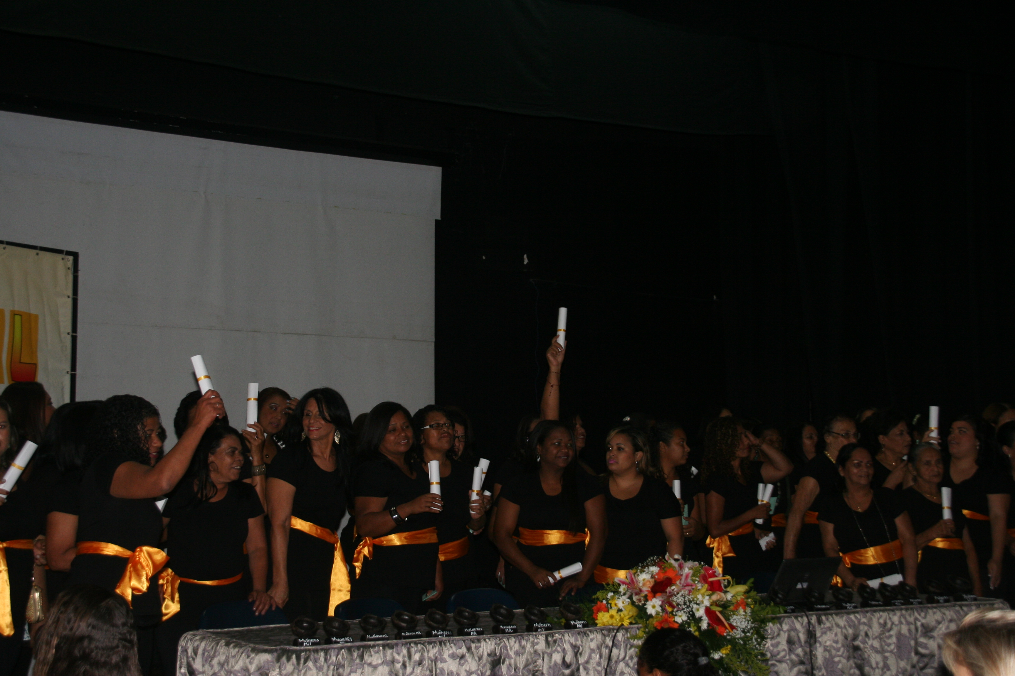 Mulheres se emocionam na solenidade de encerramento de curso do Programa Mulheres Mil