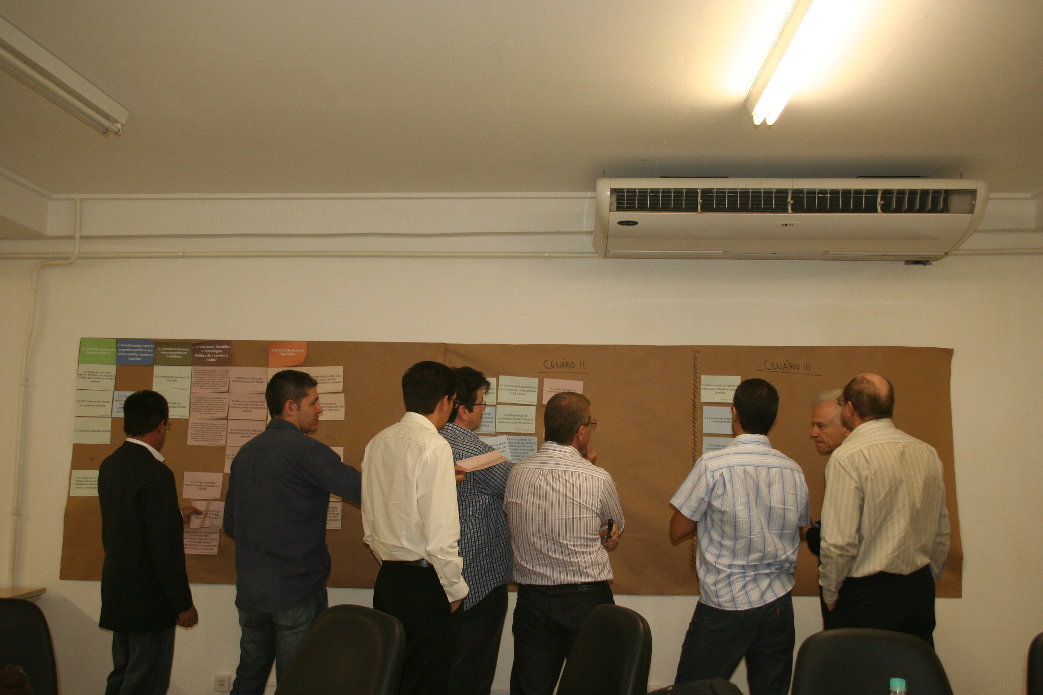 No primeiro dia, os dirigentes apontaram dois cenários como mais prováveis para os próximo anos, no Brasil: num deles, o Estado teria forte atuação em educação, ciência e tecnologia e haveria clima favorável ao desenvolvimento econômico e social; no outro, o Estado teria a mesma atuação, porém com baixo desenvolvimento econômico e social.