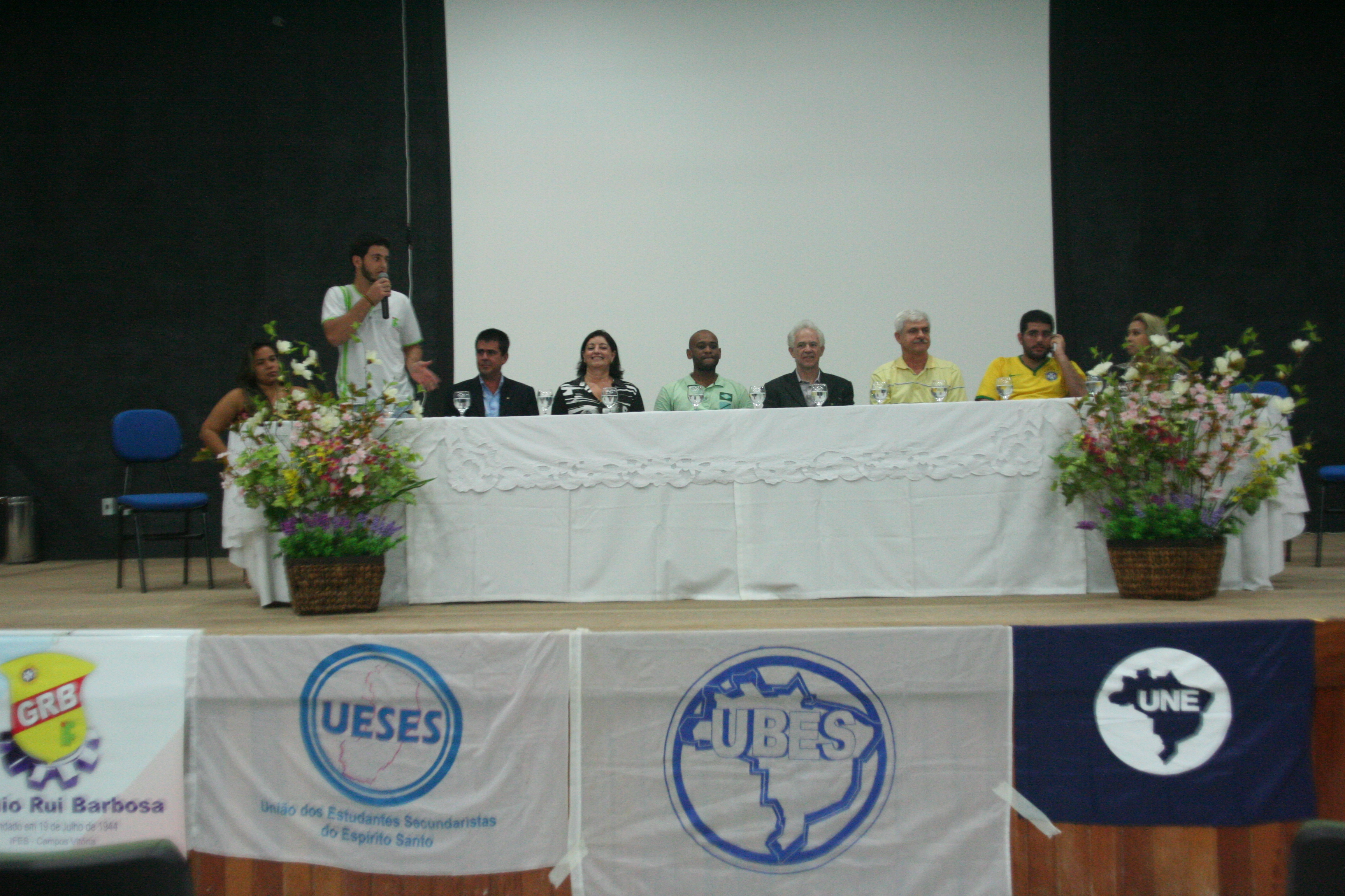Na abertura do evento, na noite do dia 25, os participantes receberam as boas-vindas da diretora do campus de Alegre, Maria Valdete Santos Tannure; do reitor do Ifes, Denio Arantes; do diretor do campus Venda Nova do Imigrante, Aloísio Carnielli; do diretor do campus Ibatiba, Flávio Pena; do presidente do grêmio estudantil de Alegre, Saulo Spala; da aluna Taila Montes Carneiro; e de Ivo Braga, um dos diretores da União Nacional dos Estudantes – UNE.