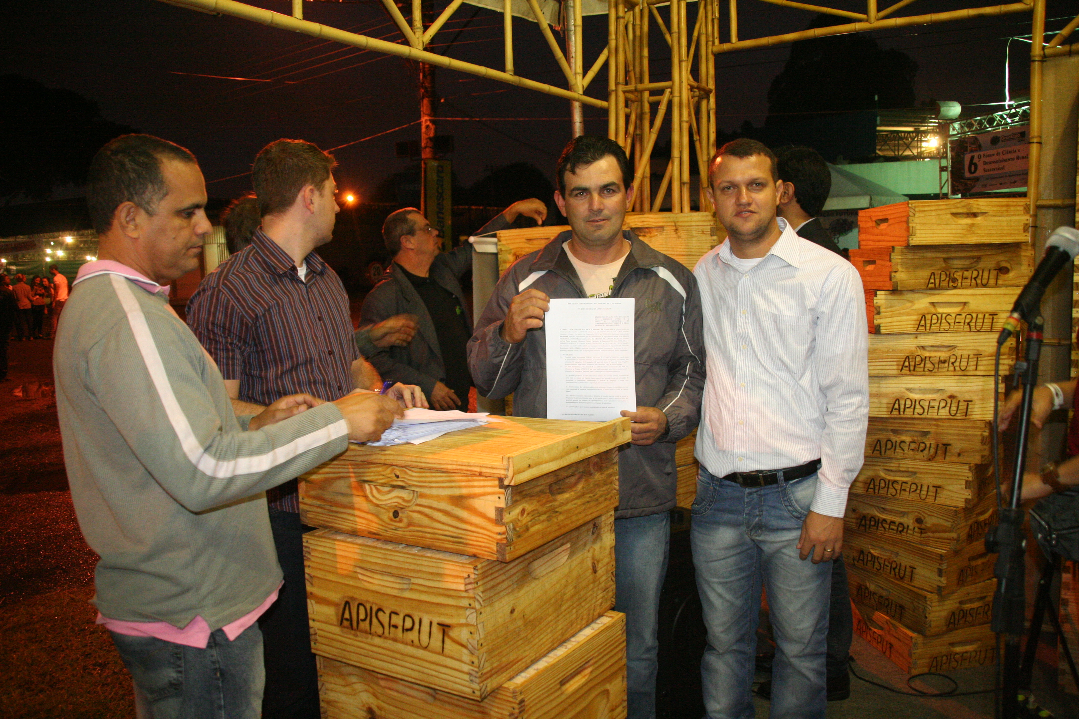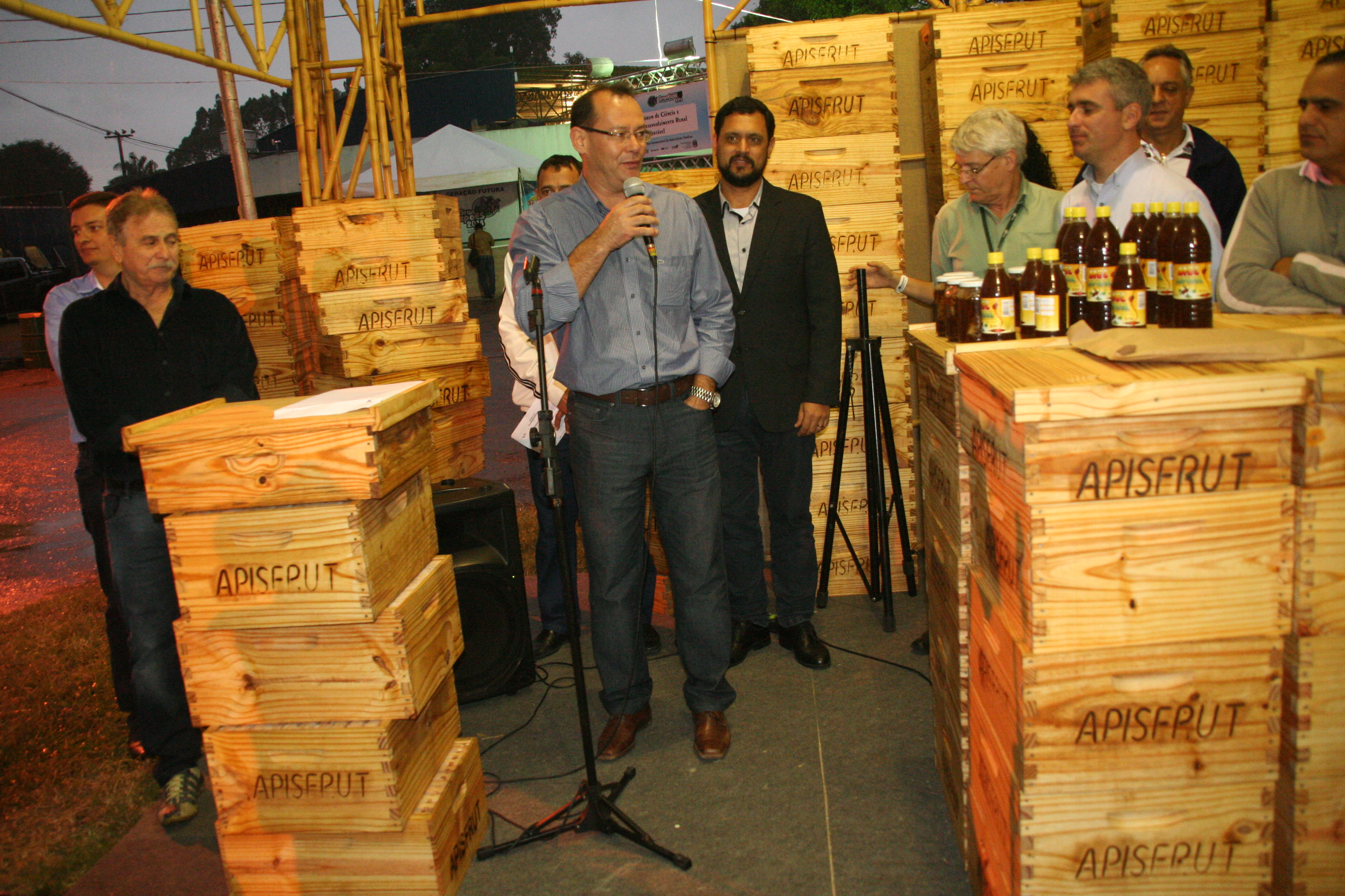 O Apisfrut tem o objetivo de incentivar a apicultura e a fruticultura, promovendo a inclusão produtiva e o desenvolvimento social. Além de apresentar suas ações, no dia 15, o Apisfrut realizou também a entrega de kits de apicultura para 20 famílias do município de Cachoeiro de Itapemirim, capacitadas para a produção de mel. O momento contou com a presença do pró-reitor de Extensão do Ifes, Renato Tannure, e de representantes de parceiros da iniciativa, como Instituto Saviesa, Sebrae, Incaper, Idaf, Fibria, Senar e Federação Capixaba das Associações de Apicultores.
