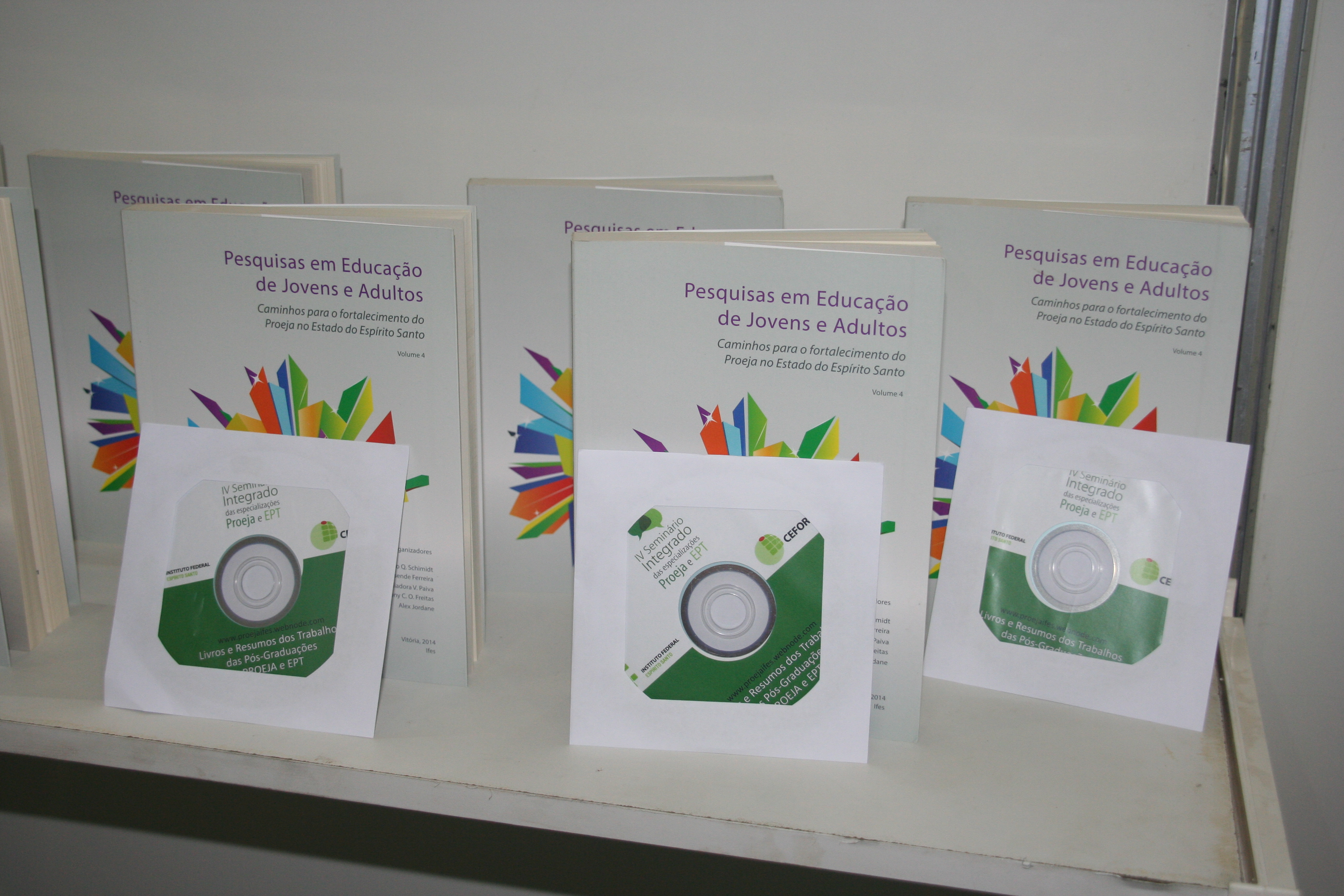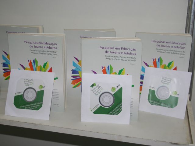 Na Feira do Livro, o professor Marcelo Schimidt, do Campus Vitória, fez o lançamento do livro “Pesquisas em educação de jovens e adultos – Caminhos para o fortalecimento do Proeja no Estado do Espírito Santo”, o 4º e último volume de uma série de livros. Ao todo foram distribuídos 40 unidades do livro e 250 cds, que também continham os outros três volumes, resumos das pós-graduações Proeja e EPT, revistas do Educimat e do Proeja e produções dos alunos da pós-graduação EPT Proeja do Campus Colatina.