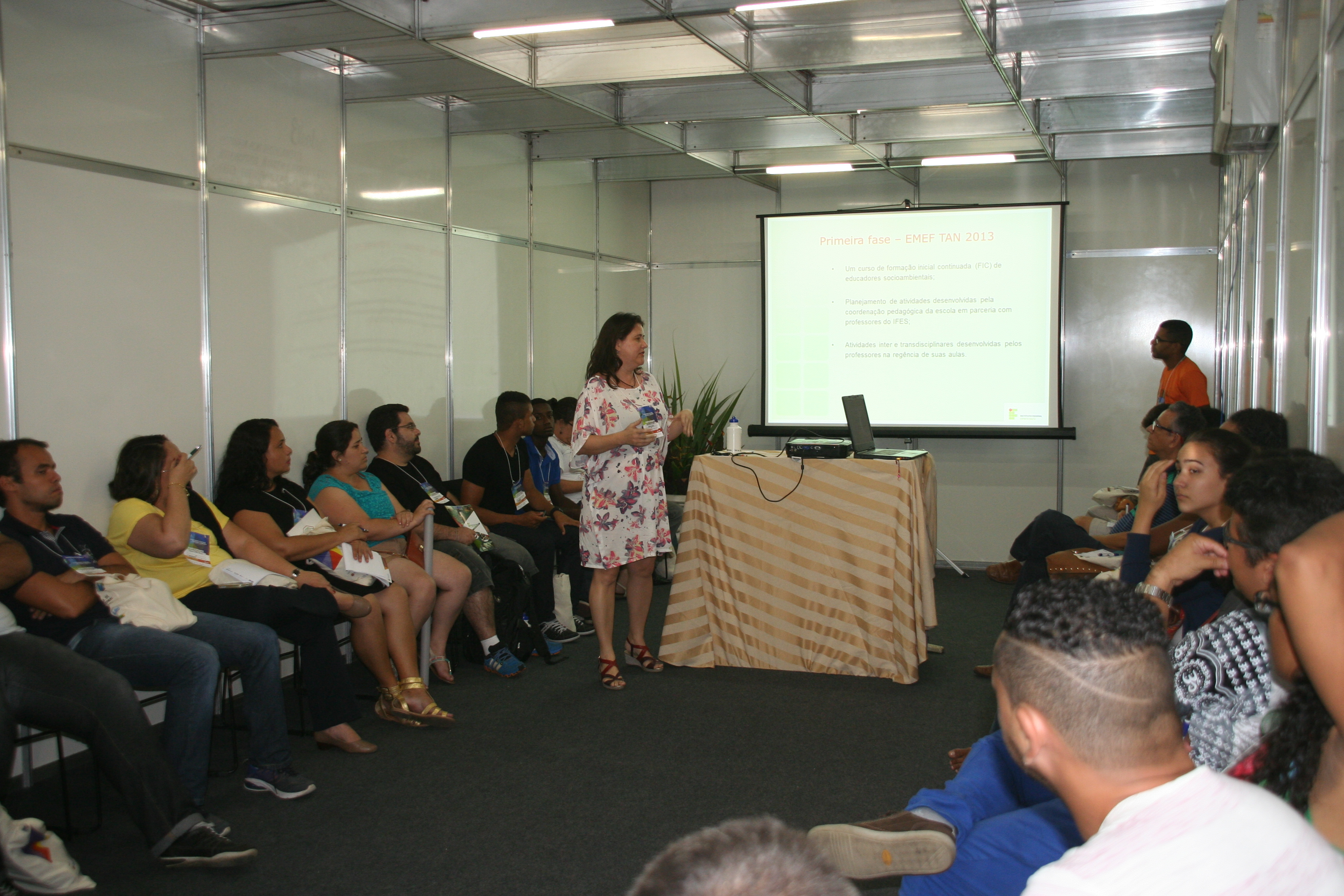 Ainda na quinta-feira (28), o professor Antônio Donizetti Sgarbi, do Cefor; e a aluna do Mestrado Profissional em Ensino de Ciências e Matemática, Therezinha de Jesus Chanca Lovat, do Campus Vitória; apresentarão um relato de experiências sobre a “Alfabetização Científica no Contexto da Cidadania Socioambiental na Cidade de Vitória/ES”. A sala ficou lotada com a participação de 37 pessoas.