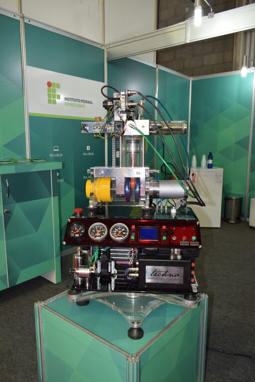 A Incubadora do Ifes também está presente no estande, com a empresa Intechno, que levou o seu motor transparente a combustão interna com injeção eletrônica e refrigeração a água. O motor pode ser utilizado em aulas de cursos de mecânica, eletromecânica, eletrotécnica, instrumentação e áreas afins.