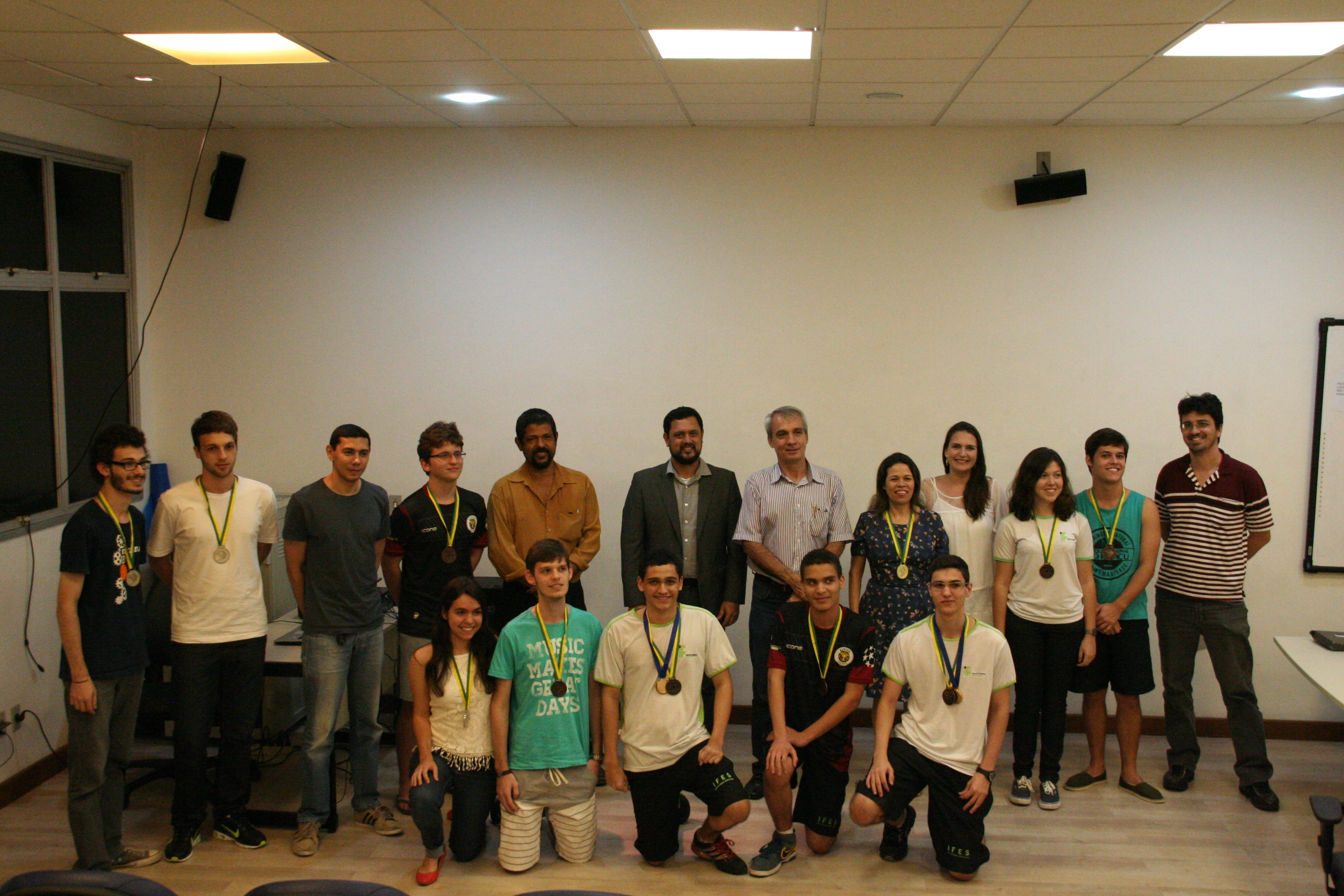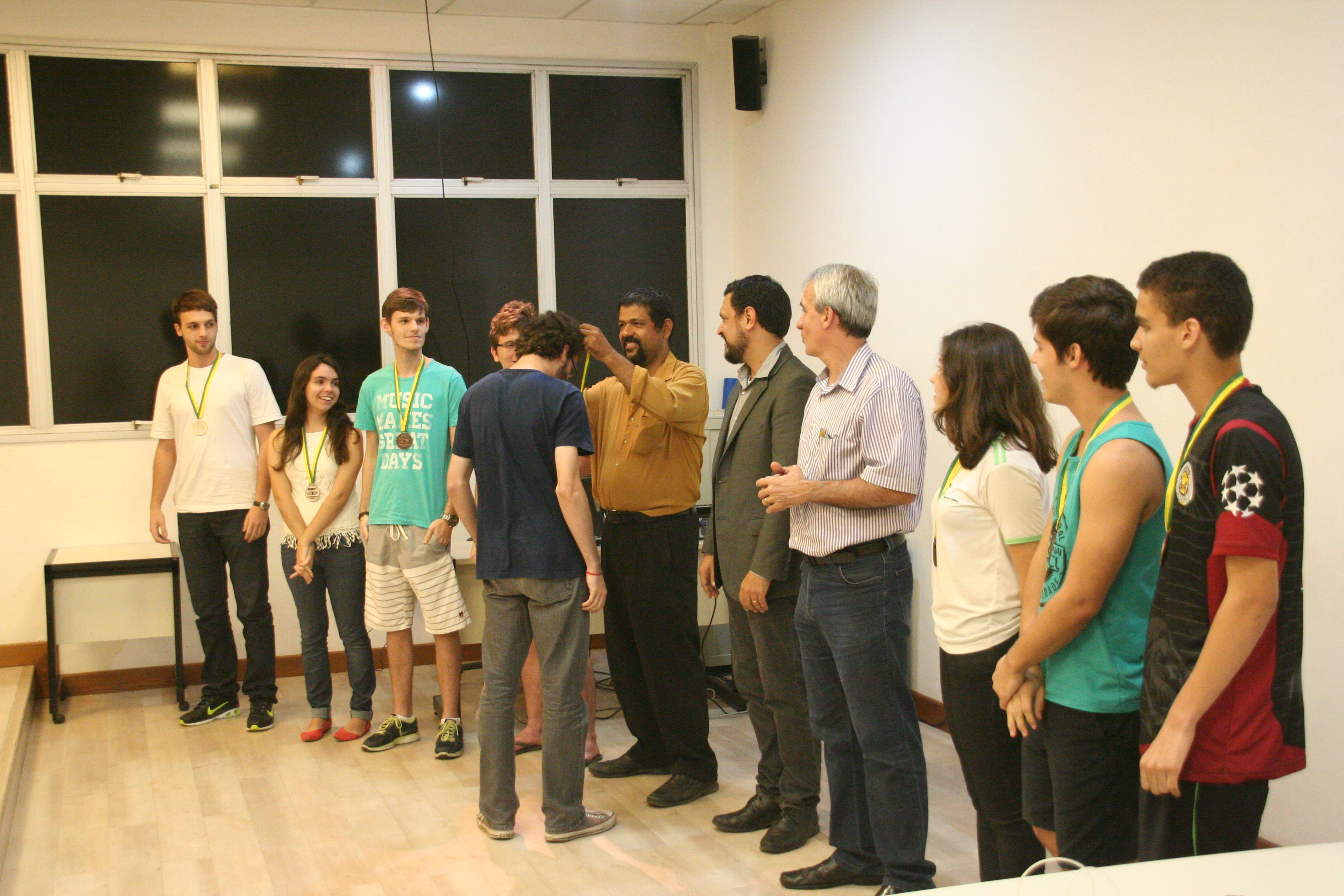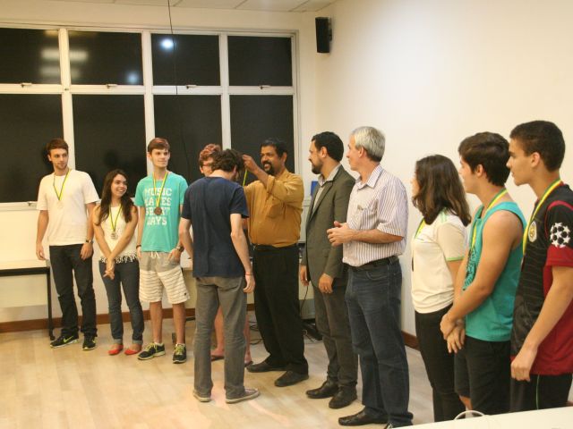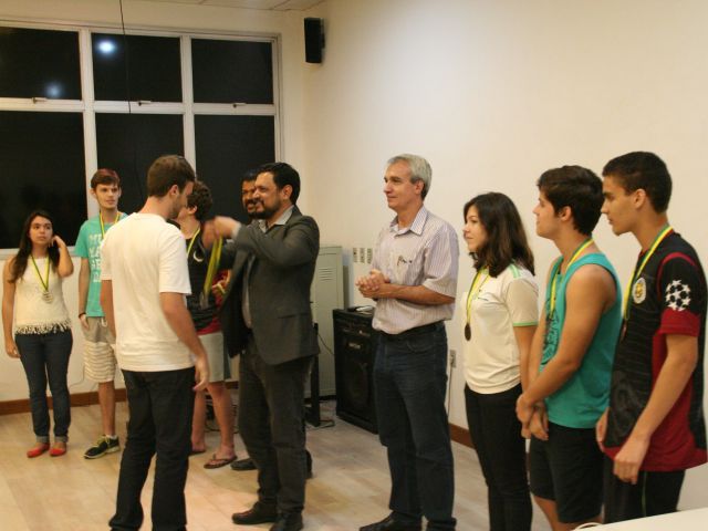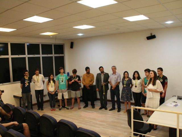 Os alunos do Campus Vitória que se destacaram na Olimpíada Brasileira de Física (OBF) e na Olimpíada Brasileira de Física das Escolas Públicas (OBFEP) de 2014 receberam medalhas pelo seu desempenho, na última quinta-feira (17). A cerimônia de premiação aconteceu no miniauditório do Campus Vitória e foi presidida pela professora Aline Costalonga Gama, coordenadora regional das duas olimpíadas.