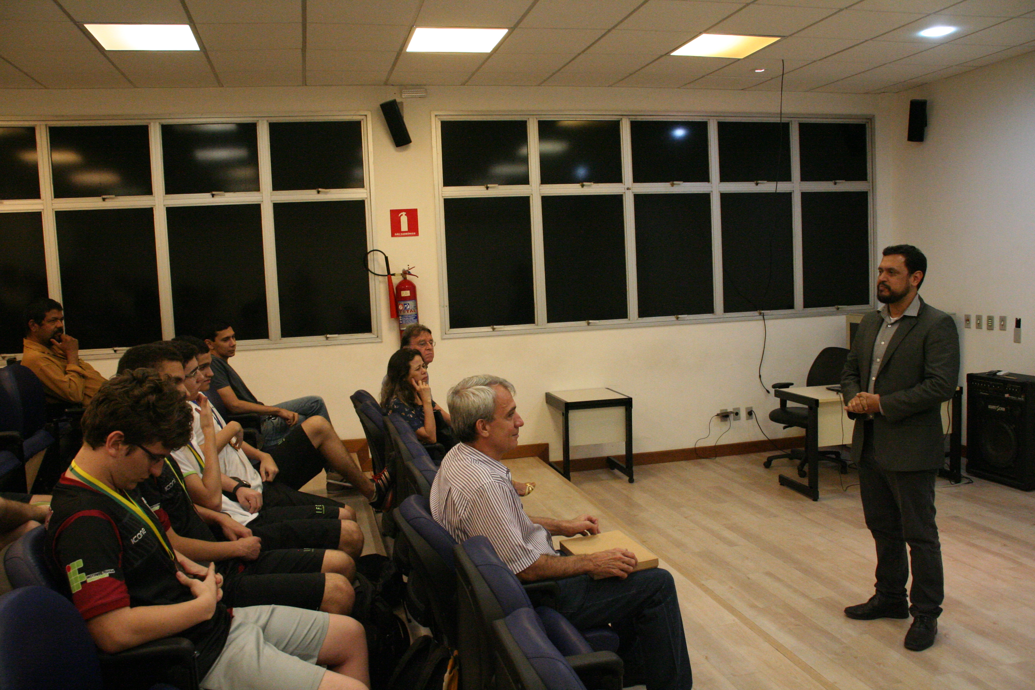 A cerimônia teve início às 18h15, com uma palestra do professor Rodolfo Camargo de Freitas. Ele falou sobre “Cosmologia: uma perspectiva histórica”, apresentando o histórico das teorias já elaboradas para explicar a origem e como funciona o universo. Em seguida, a professora Aline iniciou a entrega das medalhas, contando com a participação do diretor do Campus Vitória, Ricardo Paiva; do professor Gilmar Dias, coordenador da Física do campus; e do pró-reitor de Extensão do Ifes, Renato Tannure.
