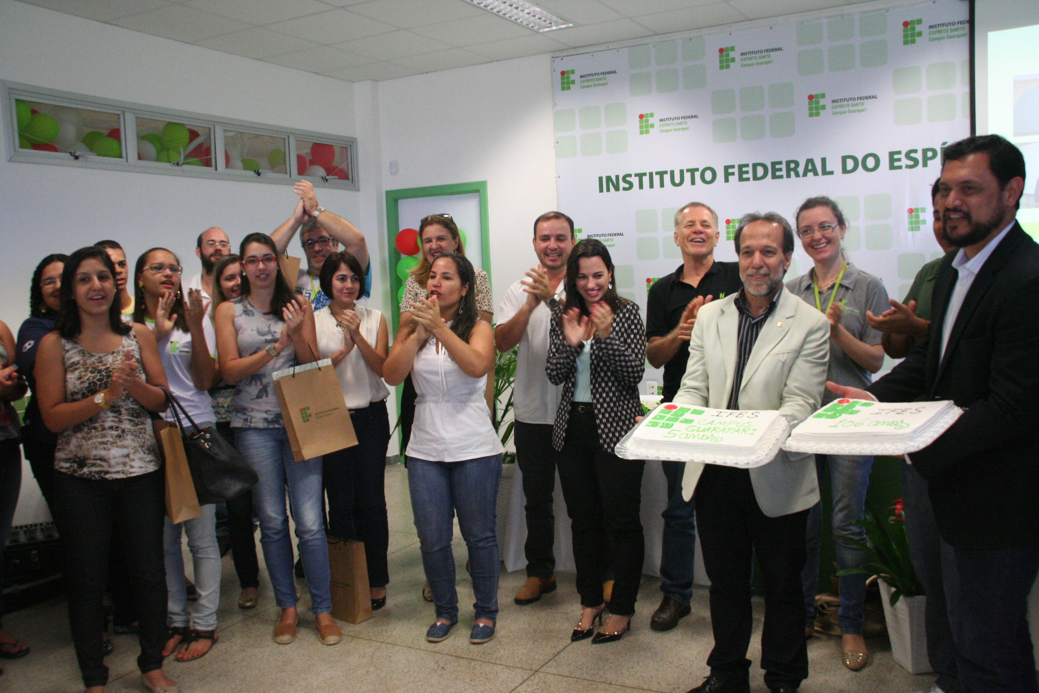 Servidores e alunos do Instituto Federal do Espírito Santo (Ifes) comemoraram os 106 anos da instituição em uma cerimônia repleta de apresentações culturais. O evento aconteceu nesta quarta-feira (23) no Campus Guarapari, como parte da programação da 10ª edição da Jornada de Iniciação Científica do Ifes. Cerca de 200 pessoas estiveram presentes, entre servidores, alunos e representantes da comunidade.