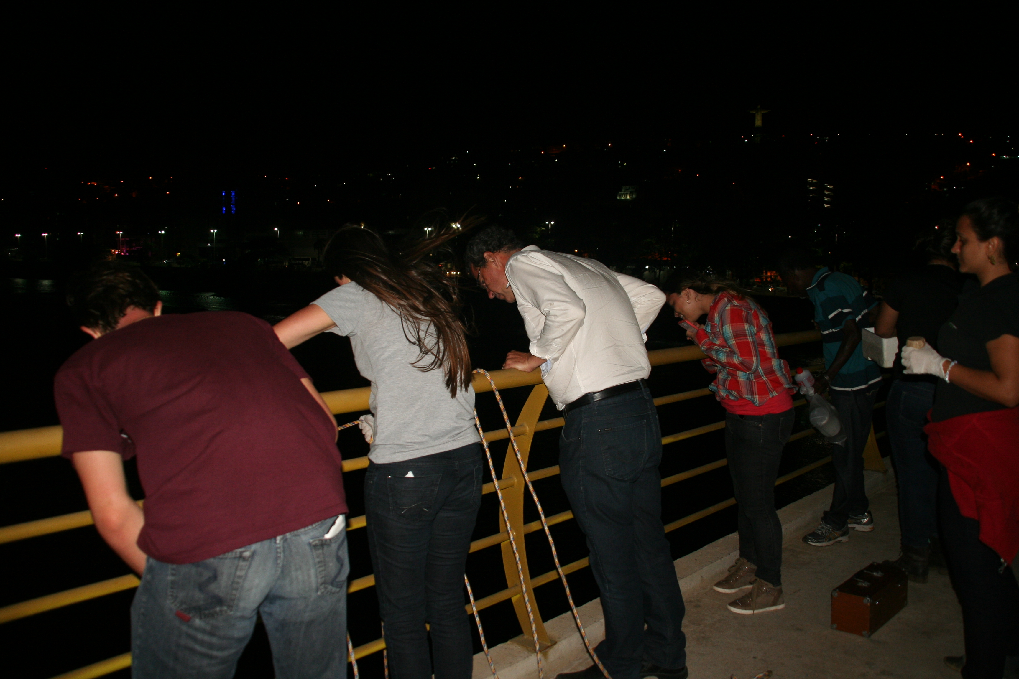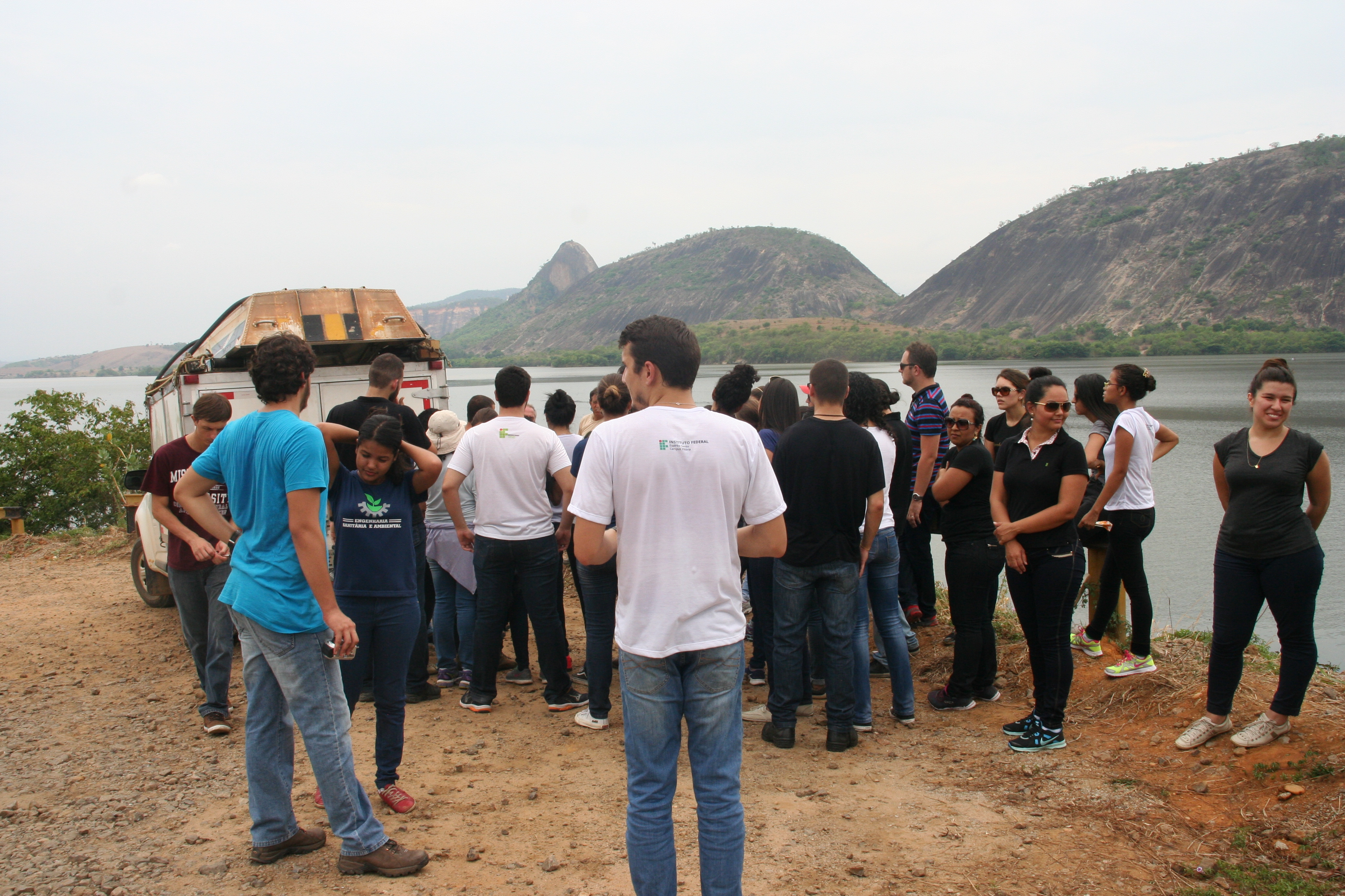 A informação passada pelo engenheiro ambiental Fernando de Souza era de que a “cabeça da lama” estava a cerca de 13 km acima daquele ponto, e já era possível notar uma mancha amarelada na água no reservatório. Fernando explicou aos alunos como funcionava o monitoramento e quais tipos de equipamentos eram usados.