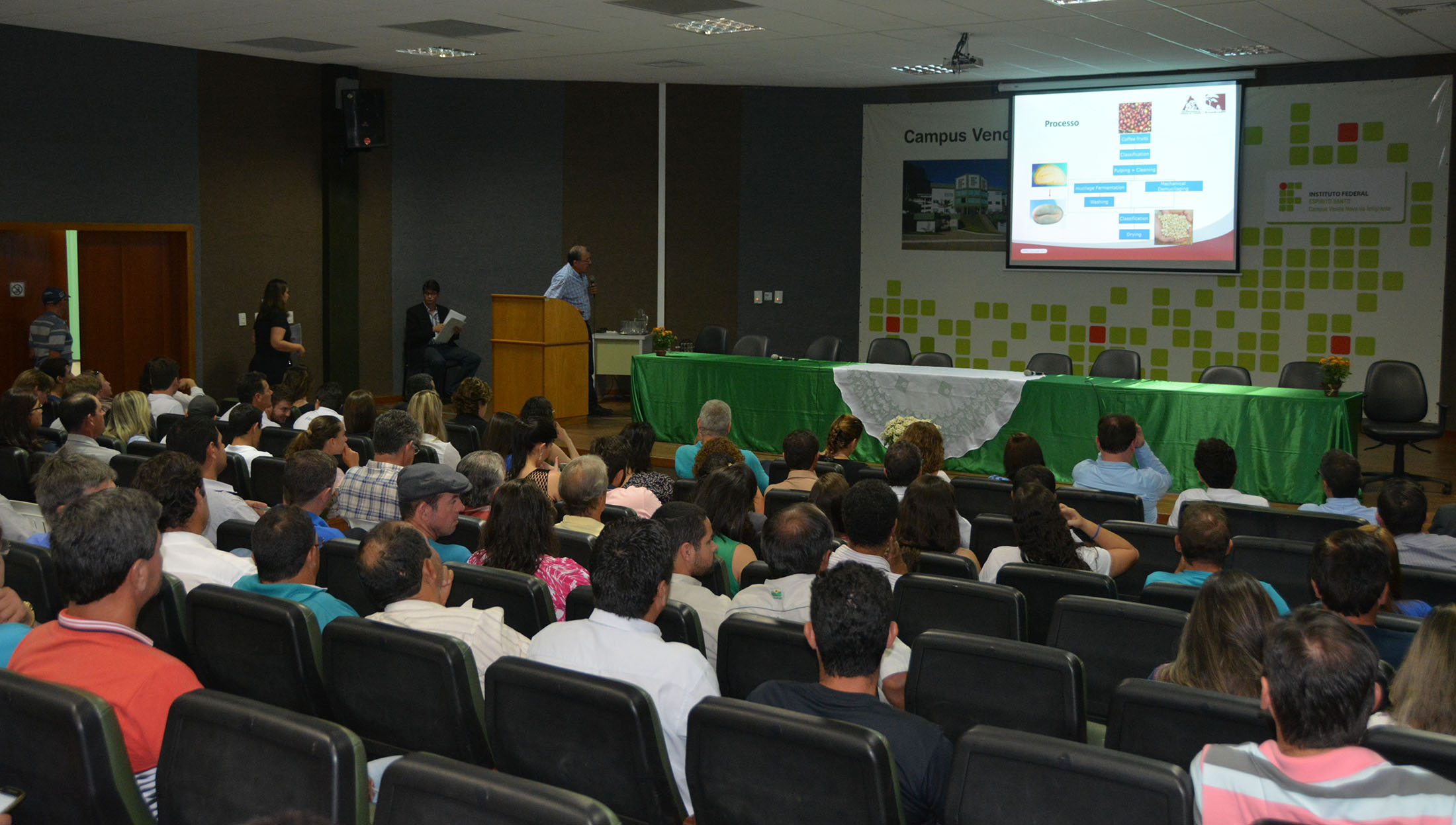 Produtores rurais da região de Venda Nova do Imigrante participaram de palestras, nos dias 18 e 19 de outubro, sobre as experiências argentinas na produção de leite; e sobre a utilização dos recursos hídricos na produção cafeeira da Colômbia. Os eventos fizeram parte da programação da XI Jornada de Iniciação Científica, Desenvolvimento Tecnológico e Inovação do Instituto Federal do Espírito Santo (Ifes) e aconteceram no auditório do Campus Venda Nova.