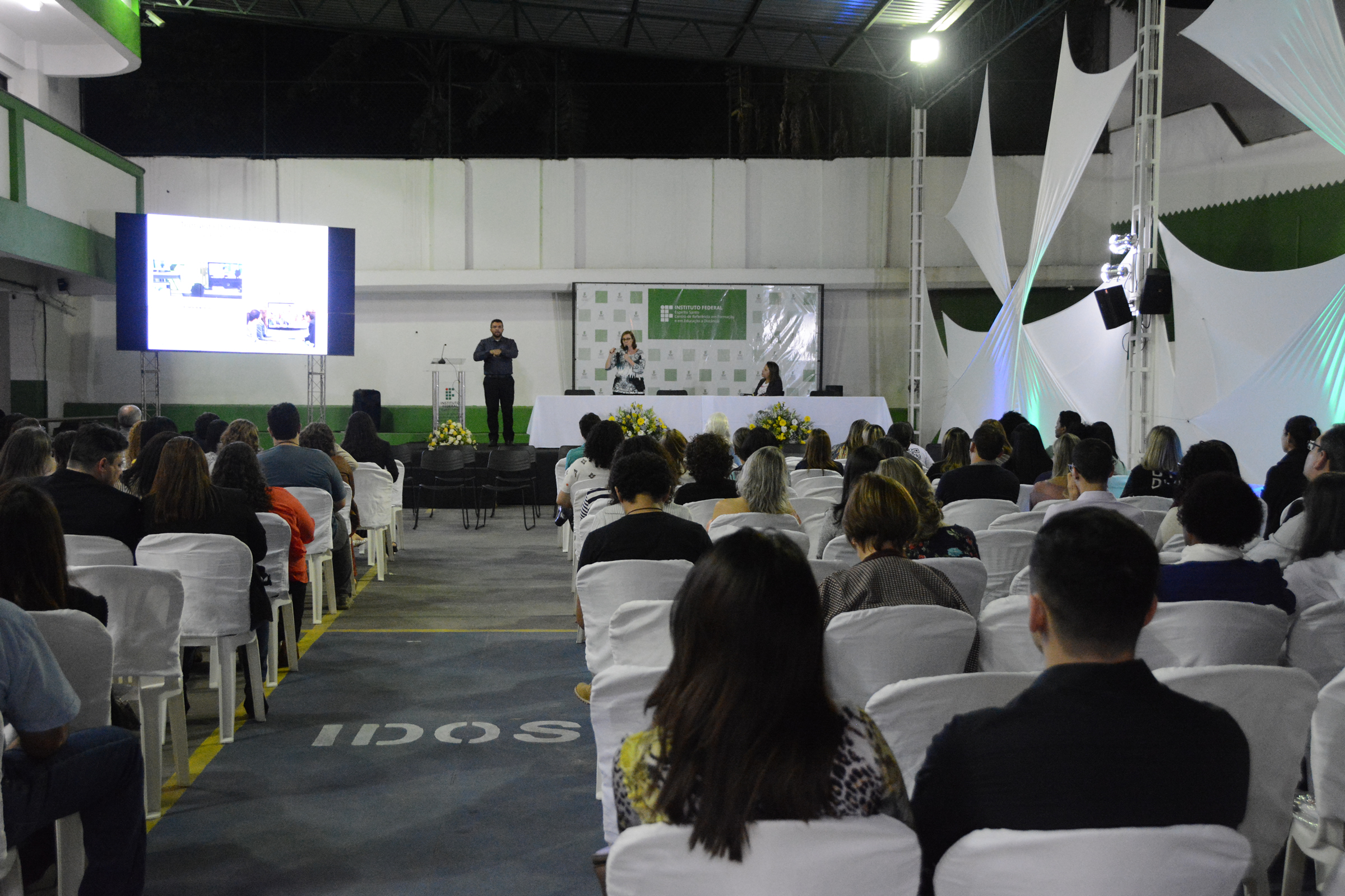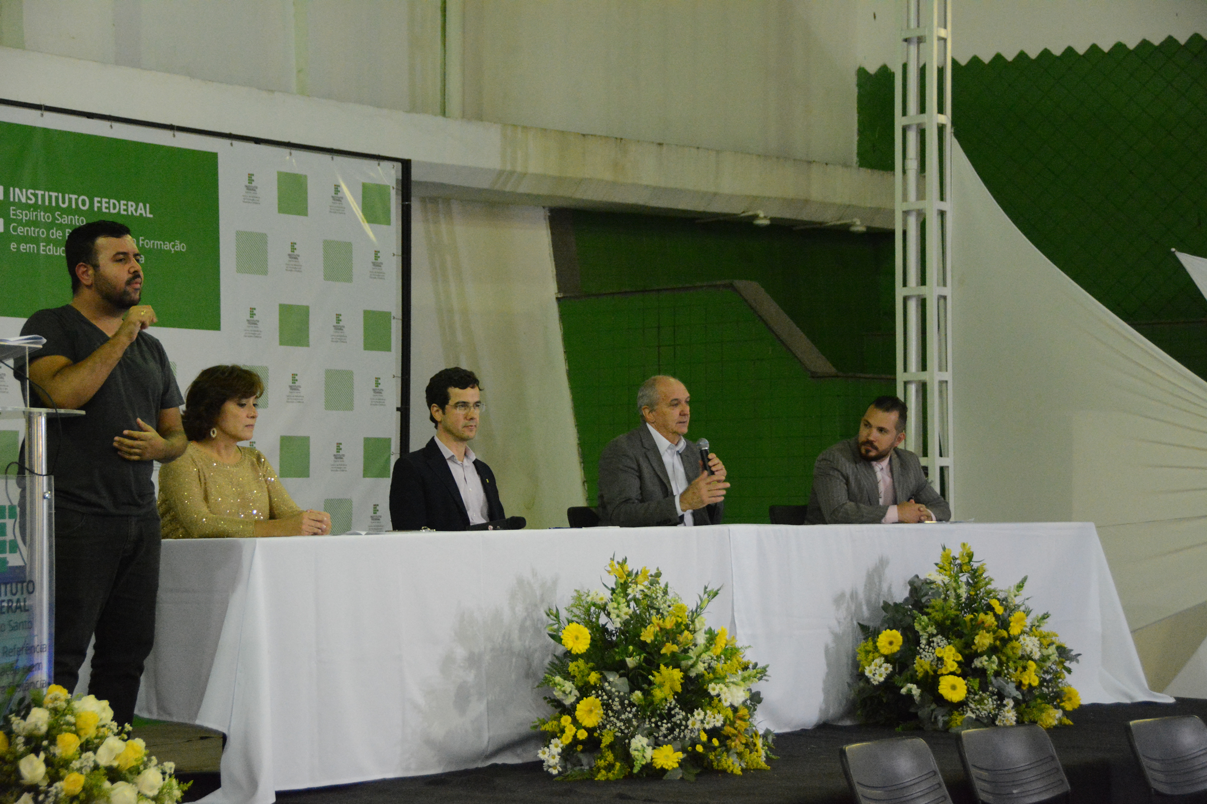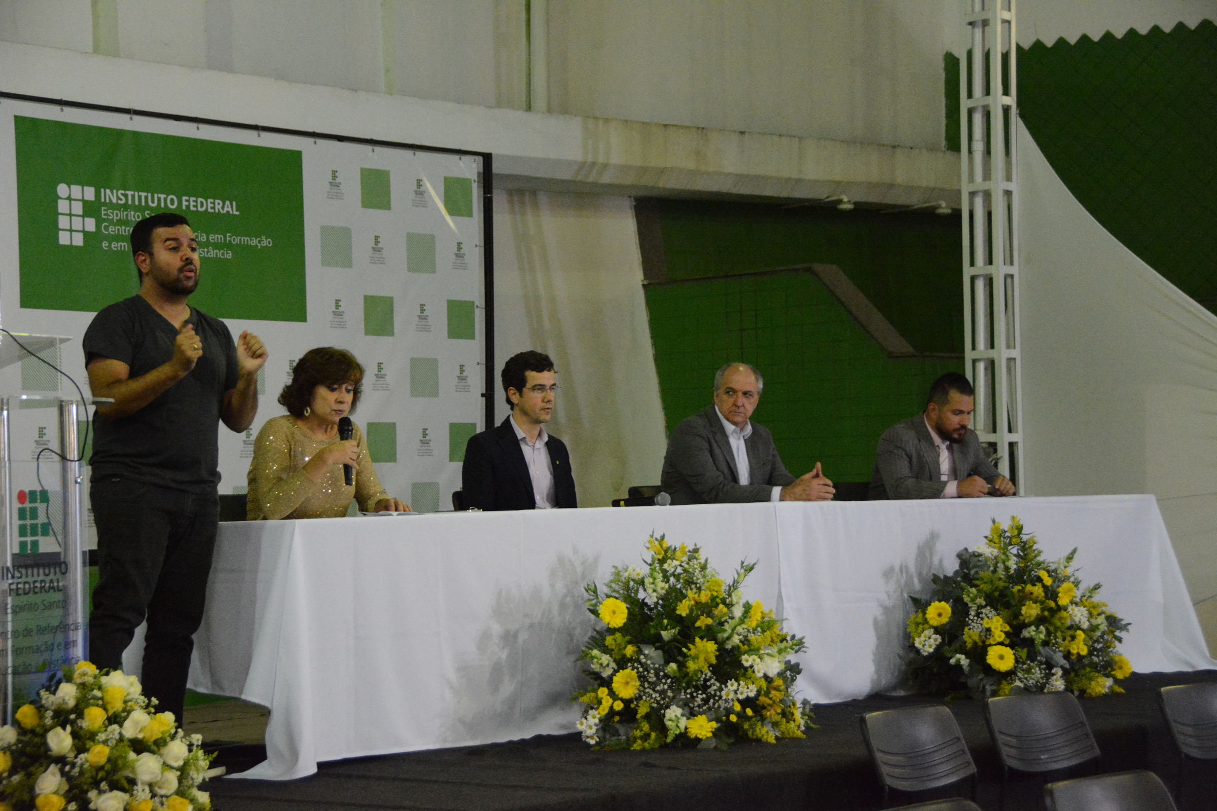A Banda da PM-ES animou a plateia tocando diversos sucessos de artistas populares tanto nacional quanto internacionalmente, como Djavan, Michael Jackson e Bruno Mars. O grupo foi bastante aplaudido pelos presentes. Em seguida, foi composta a mesa de honra: o pró-reitor de Pesquisa e Pós-Graduação do Ifes, Márcio Có, participou representando o reitor; o diretor de Ensino Técnico do Ifes, José Aguilar Pilon, representou a pró-reitora de Ensino; o coordenador de ações de Extensão, Humberto Ramos Brotto, representou o pró-reitor de Extensão; e a coordenadora de Pesquisa e Extensão do Cefor, Maria Alice Veiga de Souza, representou a diretora.