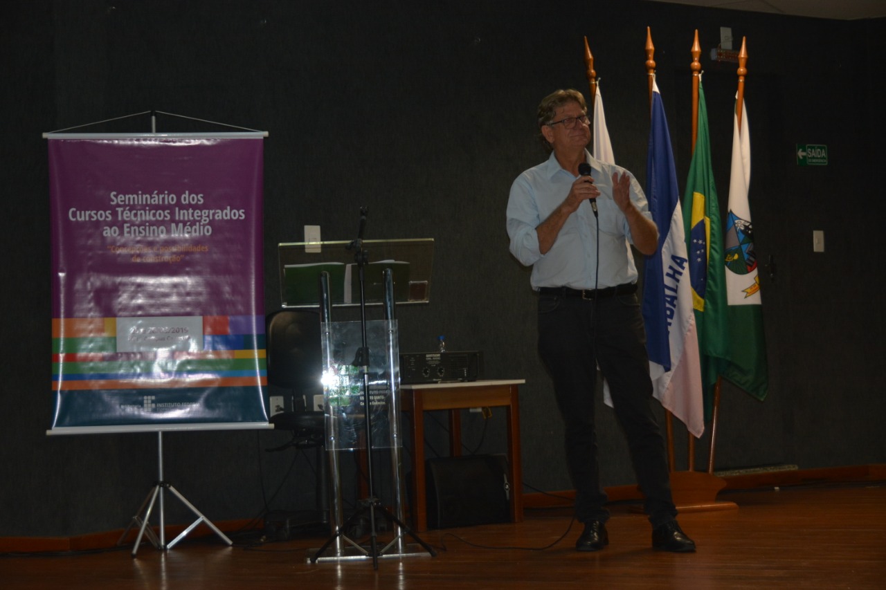 Servidores de todos os campi do Instituto Federal do Espírito Santo (Ifes) participam, nesta segunda e terça (25 e 26), do I Seminário dos Cursos Técnicos Integrados ao Ensino Médio, que tem o objetivo de iniciar um trabalho coletivo para a estruturação diretrizes para área, no âmbito da instituição. A abertura que aconteceu na noite desta segunda-feira (25) lotou o auditório do Campus Cariacica e contou a palestra do servidor do Instituto Federal Sul Rio Grandense (IFSul), Sidinei Cruz Sobrinho.