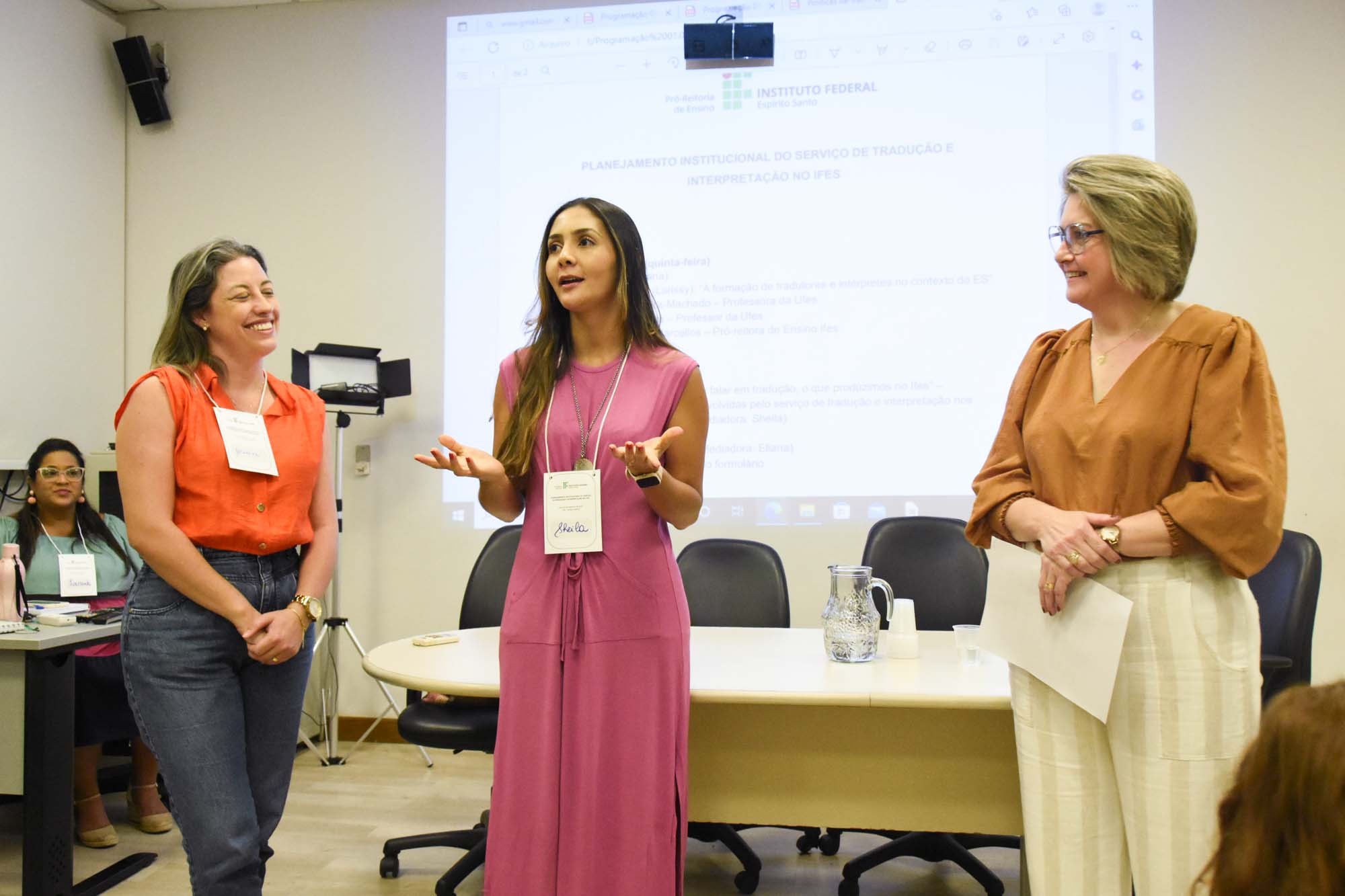“Os vários contextos em que a tradução e interpretação ocorrem, apresentam especificidades que tornam cada um diferente do outro e por isso, precisam ser considerados, principalmente quando destacamos a expansão”, explica a pró-reitora. Ela destaca que esse foi o primeiro passo para “sistematizar esse trabalho no Ifes entre os que são efetivos e aqueles que são contratados anualmente para a gente dar o tom do serviço de tradução e interpretação no Instituto”.