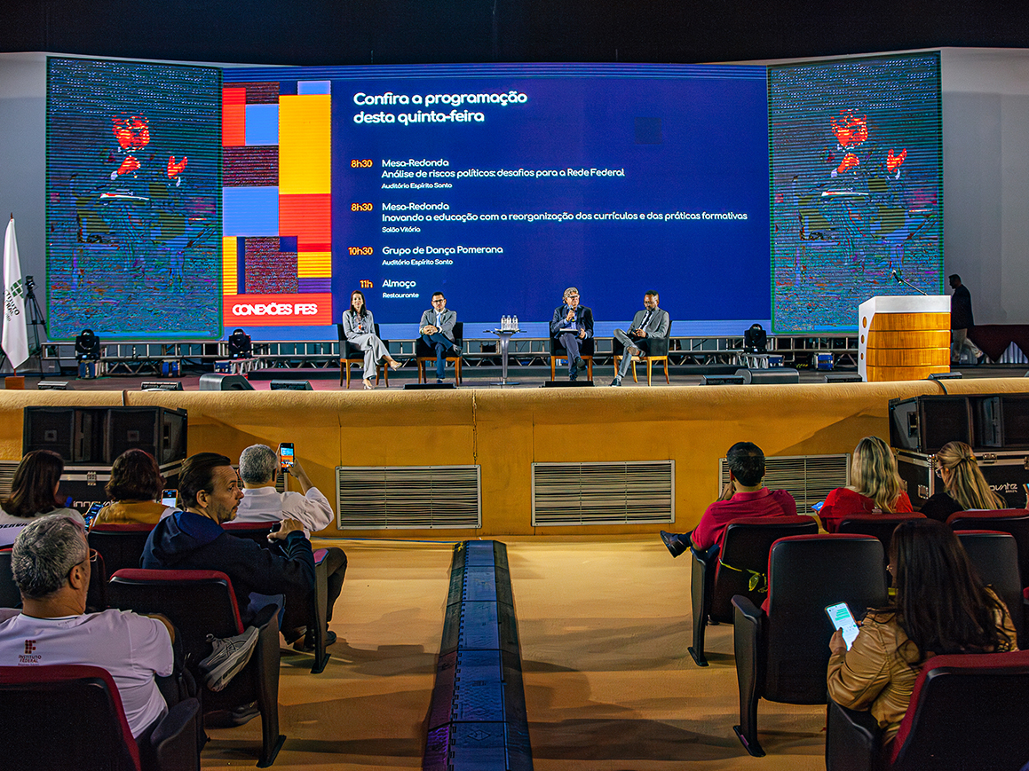 Os desafios para consolidação de parcerias estratégicas em colaboração com empresas e governo e participação em redes de inovação foram discutidos na tarde desta quarta-feira (20), segundo dia do Conexões Ifes, que acontece no Sesc Praia Formosa em Aracruz até esta sexta-feira (21). Para falar sobre o assunto, participaram da conversa a vice-presidente da Sociedade Brasileira para o Progresso da Ciência (SBPC), Francilene Garcia; e o chefe de gabinete da Financiadora de Estudos e Projetos (Finep), Fernando Peregrino, em debate mediado pelo pró-reitor de Extensão do Ifes, Lodovico Ortlieb Faria.