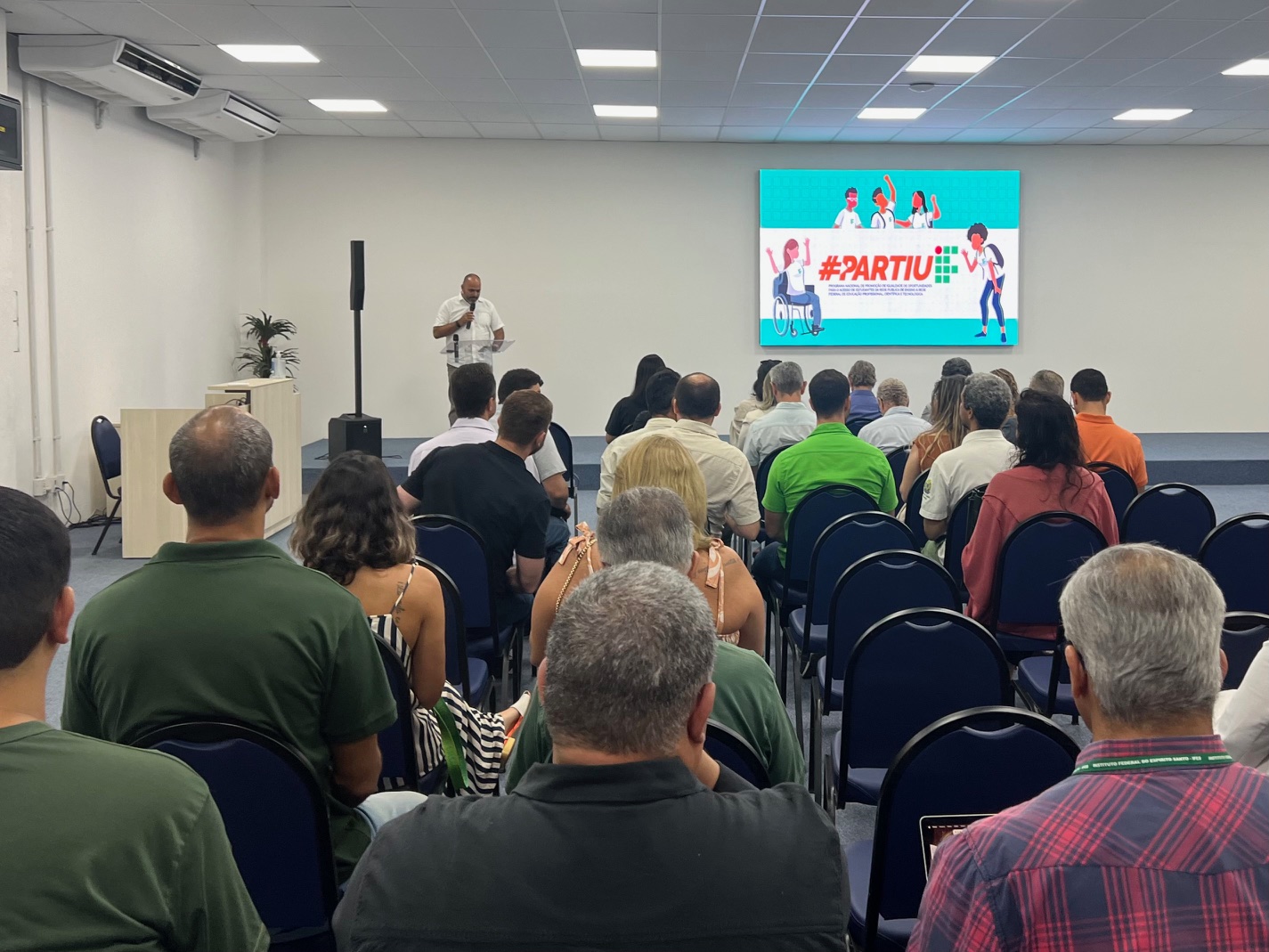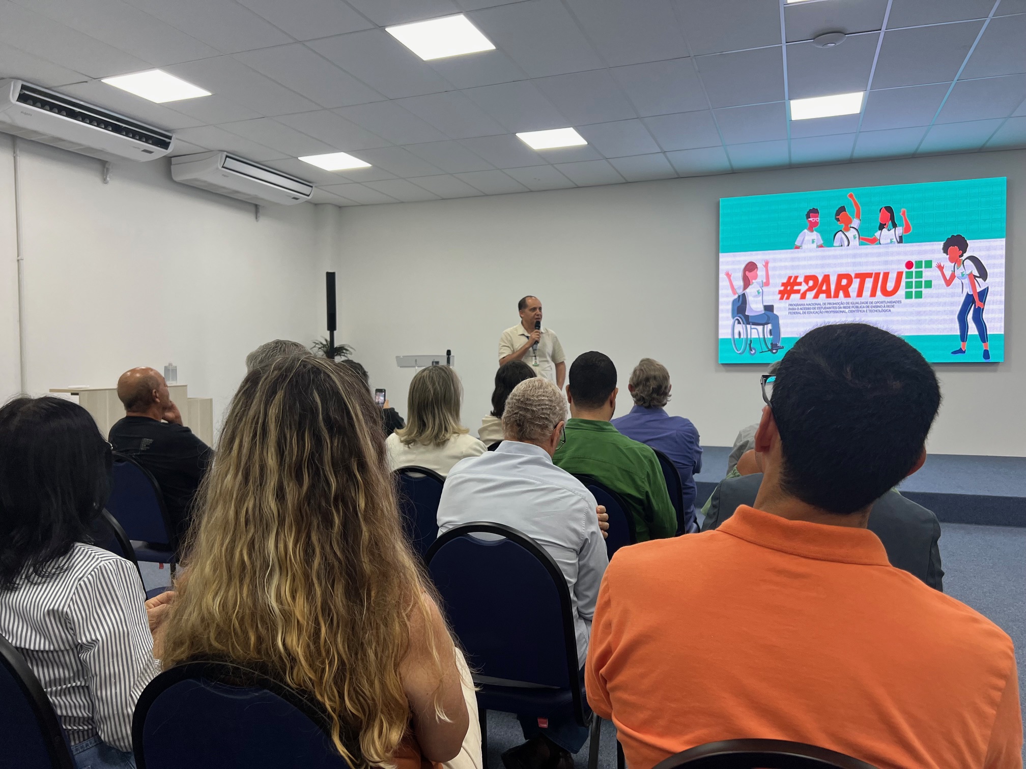 Gestores da área de educação, coordenadores locais e gestores do Ifes participaram, nesta quinta-feira (20), do lançamento do Partiu IF, realizado na Cidade da Inovação, em Jardim da Penha, Vitória. O Partiu IF é um programa do governo federal voltado para estudantes em vulnerabilidade social, negros, quilombolas, indígenas e pessoas com deficiência. Seu objetivo é oferecer reforço em português, matemática e ciências da natureza, de modo a ampliar a igualdade de oportunidades no acesso aos institutos federais.