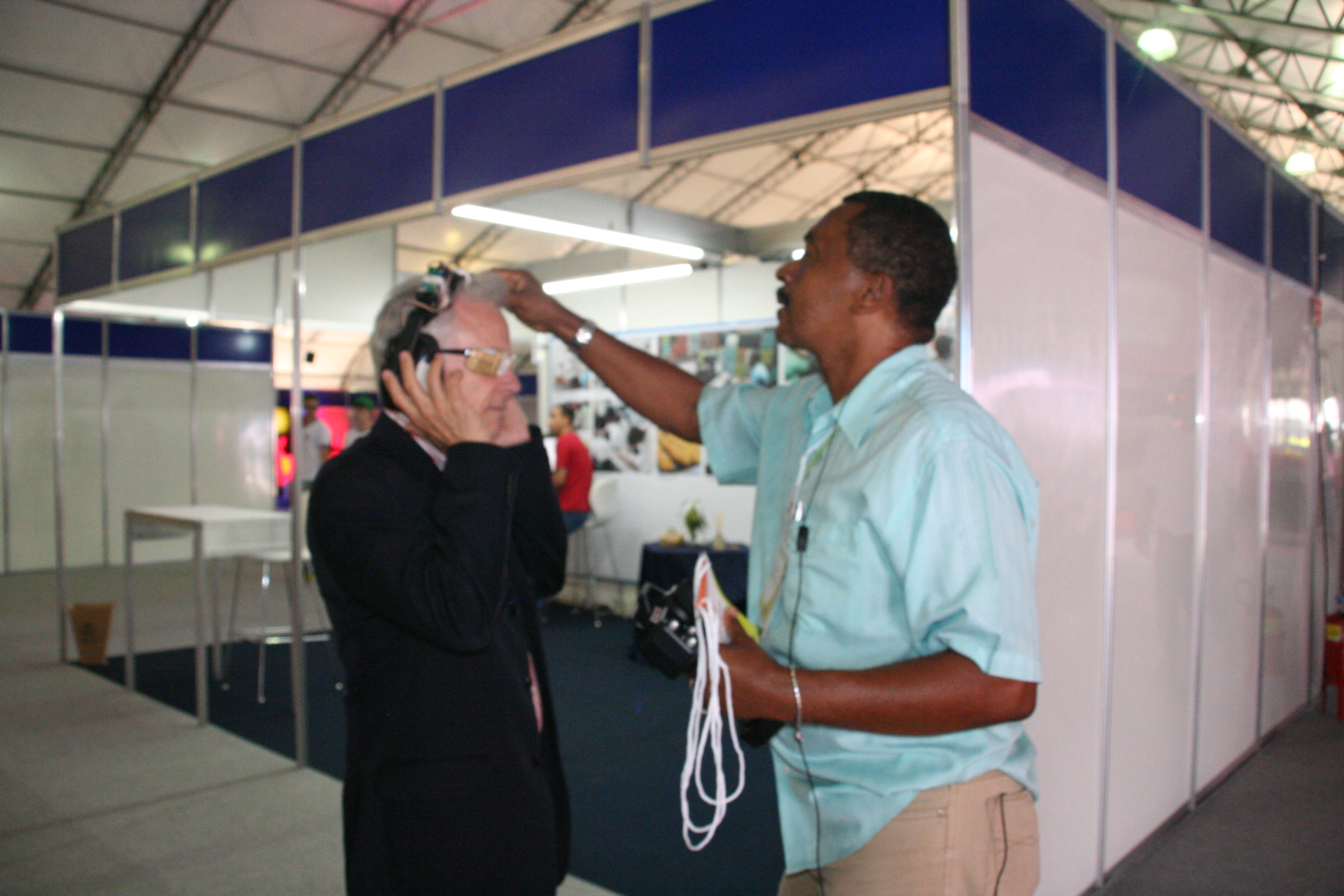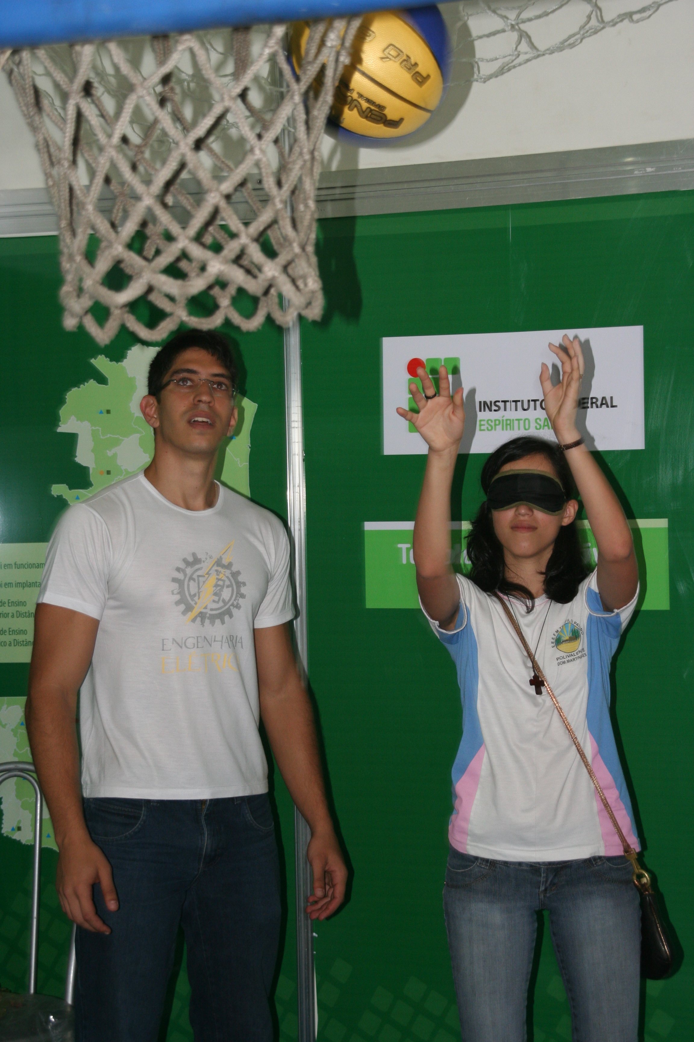 Mas o ponto mais movimentado do estande do Instituto foi o do projeto “Tecnologias Assistivas ao Esporte para Pessoas em Condição de Deficiência Visual”. No local, foi colocada uma cesta de basquete que emite sinais sonoros para orientar os arremessos dos visitantes. A pessoa que queria jogar era vendada, girava em torno de si e então tentava acertar a cesta. Quem acertasse três vezes levava uma medalha.