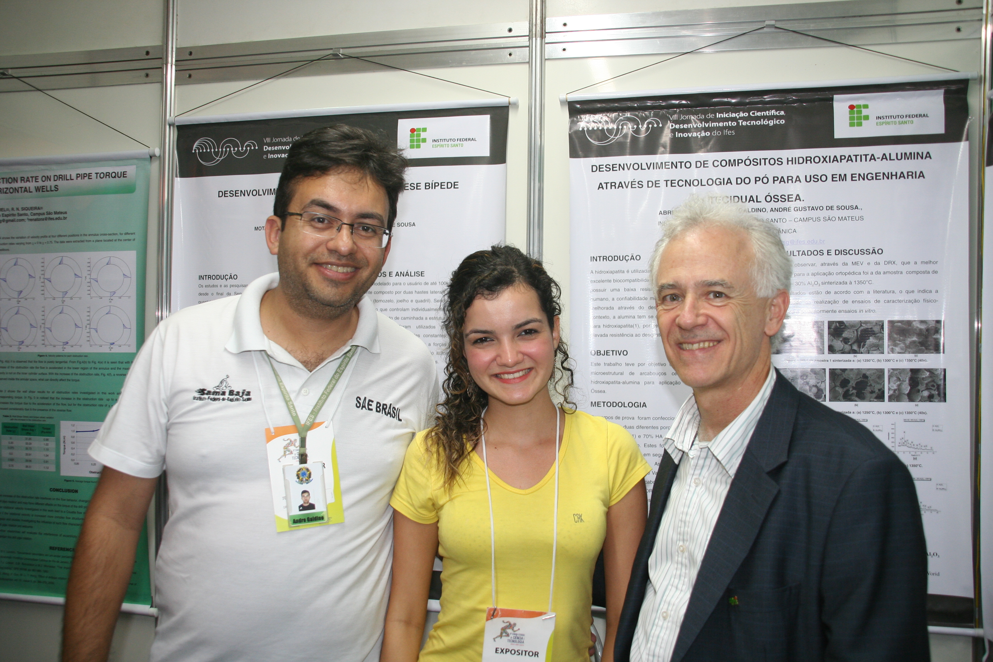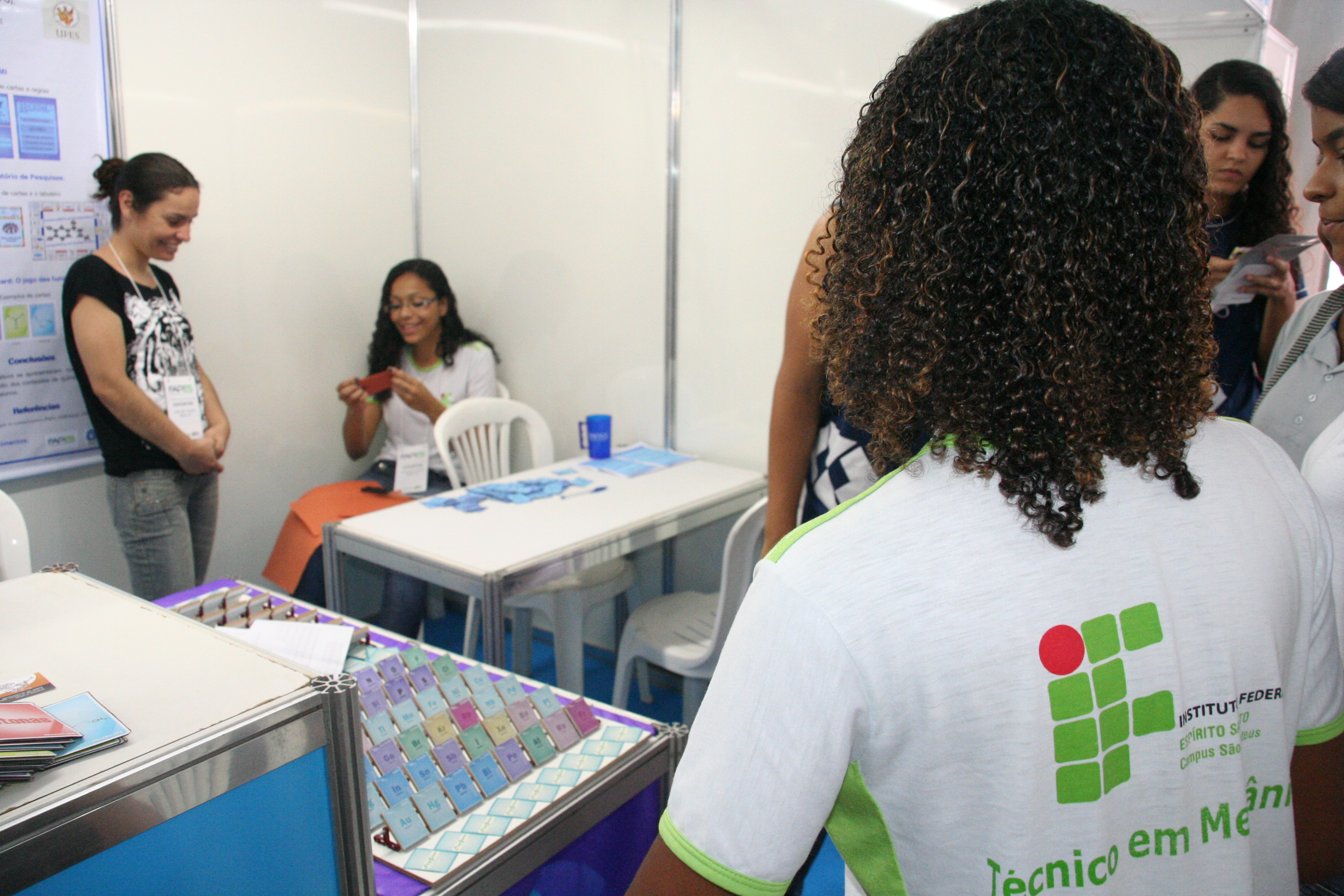 Alunos do Ifes estiveram presentes ainda no estande da Fundação de Amparo à Pesquisa do Espírito Santo – Fapes. Emily de Carvalho e Letícia Moteh, do curso técnico em Mecânica do campus São Mateus, juntamente com Francisco Ferraz Zordan, aluno do técnico em Eletrotécnica do mesmo campus, expuseram o trabalho “Desenvolvimento e Aceitação de Jogos Didáticos no Ensino de Química”.