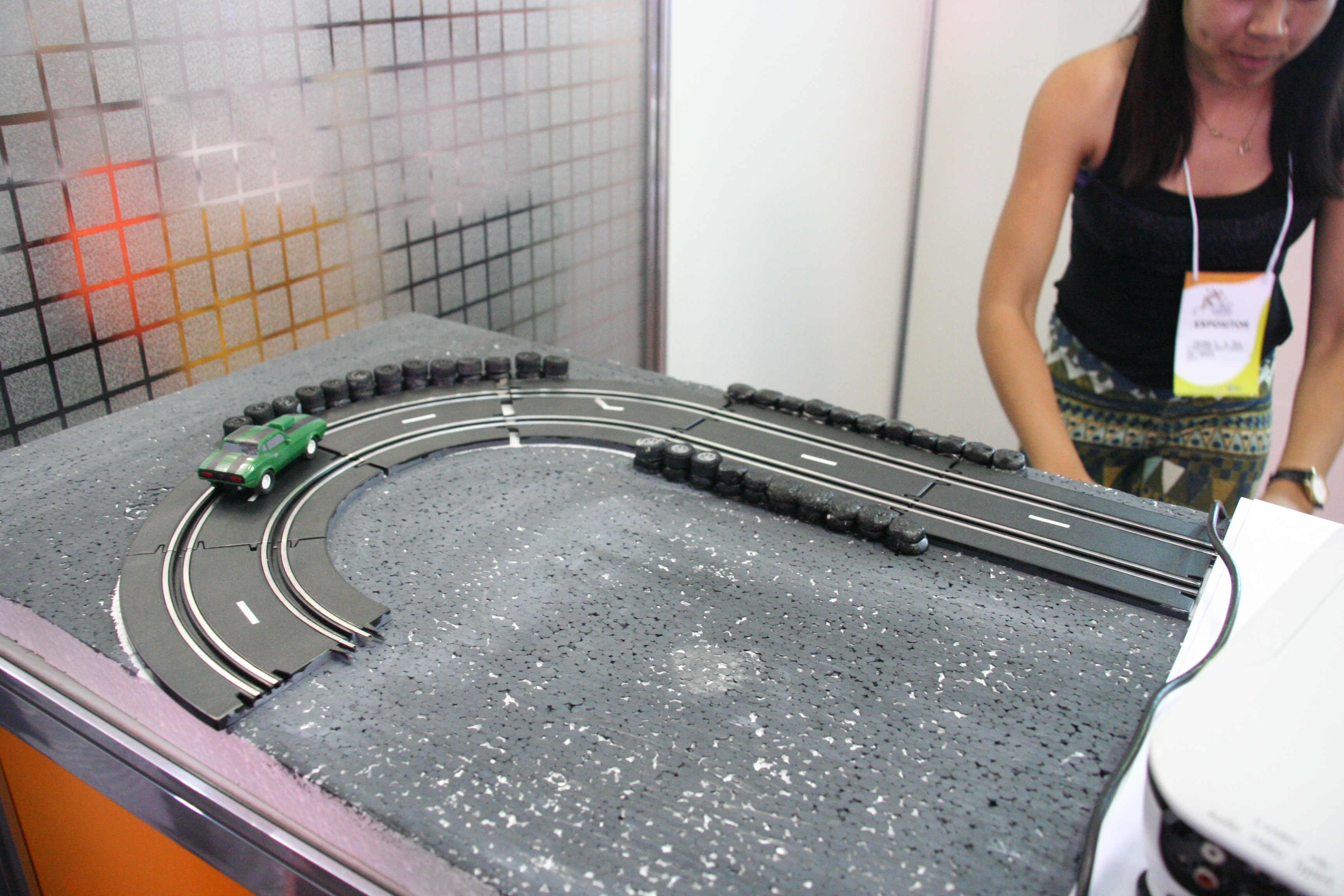 O objetivo da proposta – mostrada numa maquete – é reduzir o impacto das colisões dos carros nas laterais das pistas e evitar colisões frontais entre os veículos. A ideia da aluna foi de usar pneus, fixados de forma apropriada, no meio de pistas simples e dos lados, arranjados em sequências de pilhas verticais.