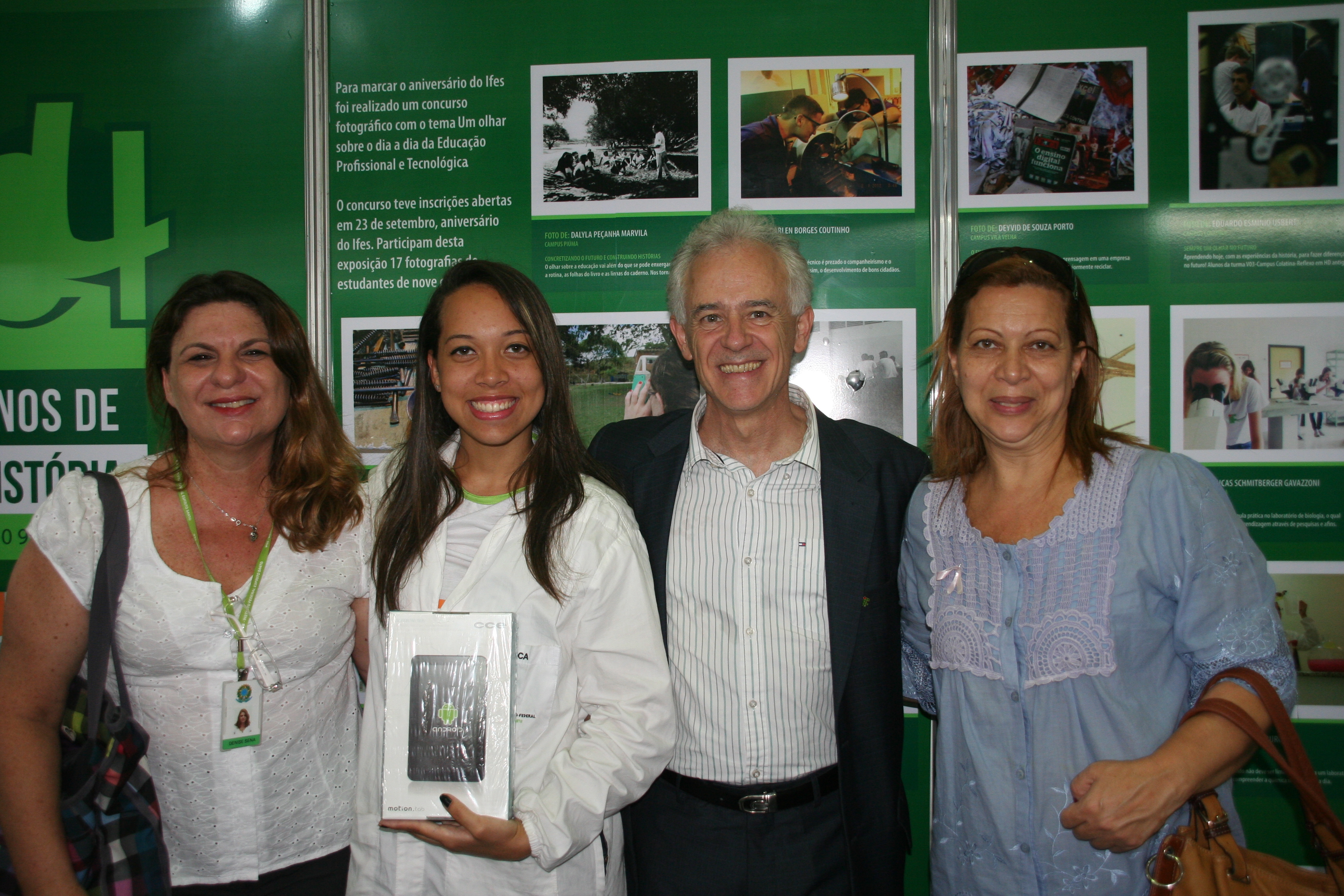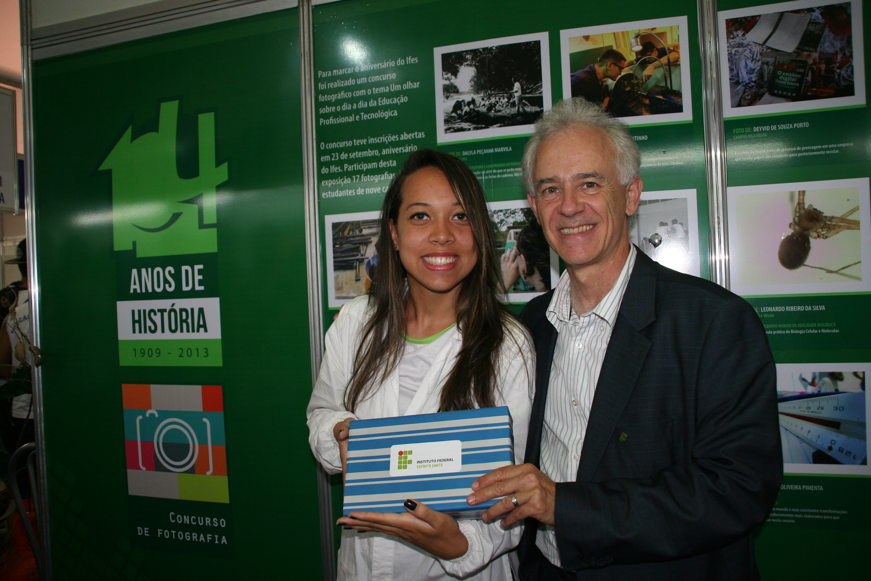 As fotografias enviadas por alunos que participaram da competição ficaram expostas no local e, na quinta-feira (24), o reitor fez a entrega do tablet à vencedora, a aluna Thaiane Lima Tibúrcio, do curso Técnico em Química do campus Vila Velha.