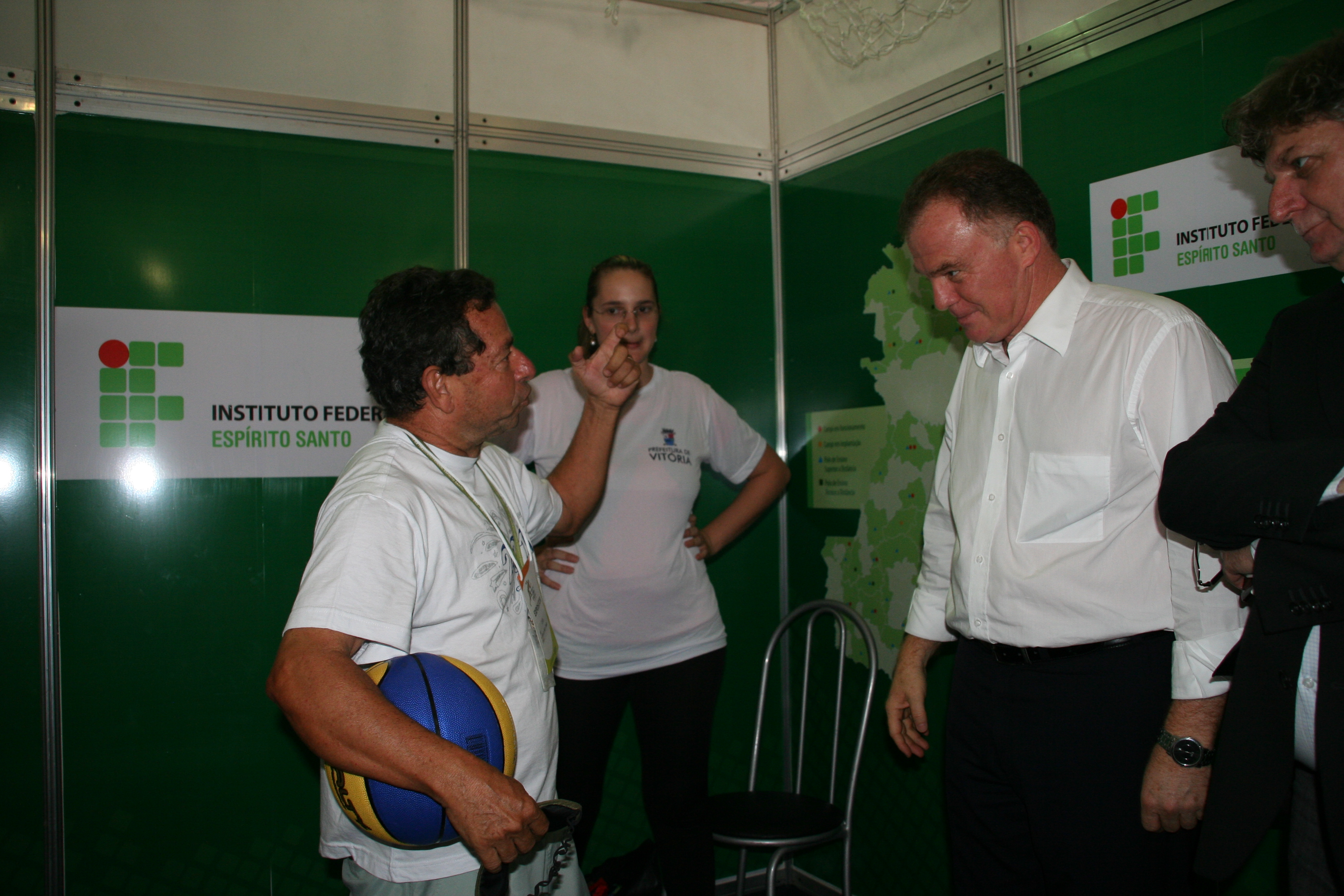 O sucesso foi tanto que, na quinta-feira (24), o governador do Estado, Renato Casagrande, visitou o estande do Ifes e também tentou acertar a cesta no jogo de basquete às cegas. Ele foi acompanhado do deputado federal Paulo Foletto e do secretário de Estado de Ciência, Tecnologia, Inovação, Educação Profissional e Trabalho, Jadir Pela.